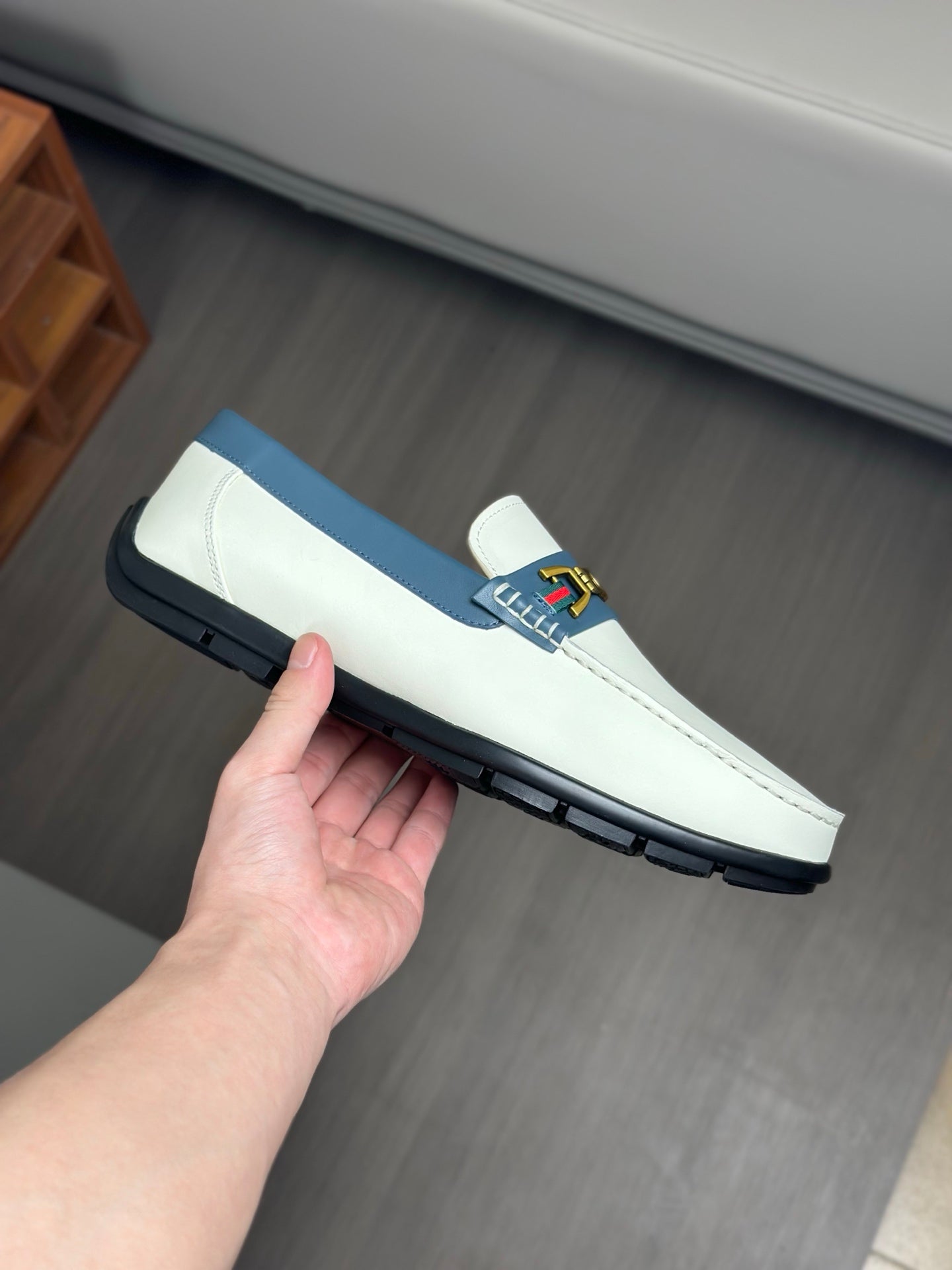 GG Men's Loafer White Cowhide 573507