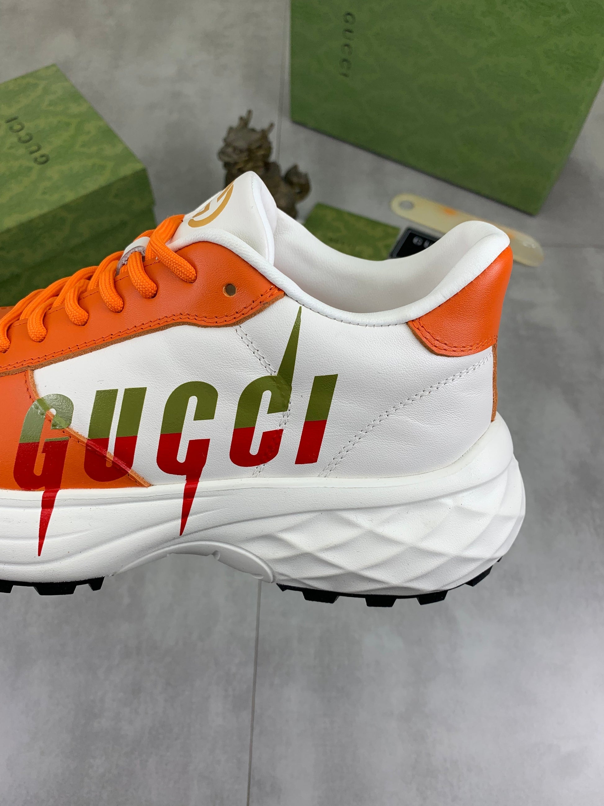GG Men's Rhyton Sneaker Orange White Calfskin 528954