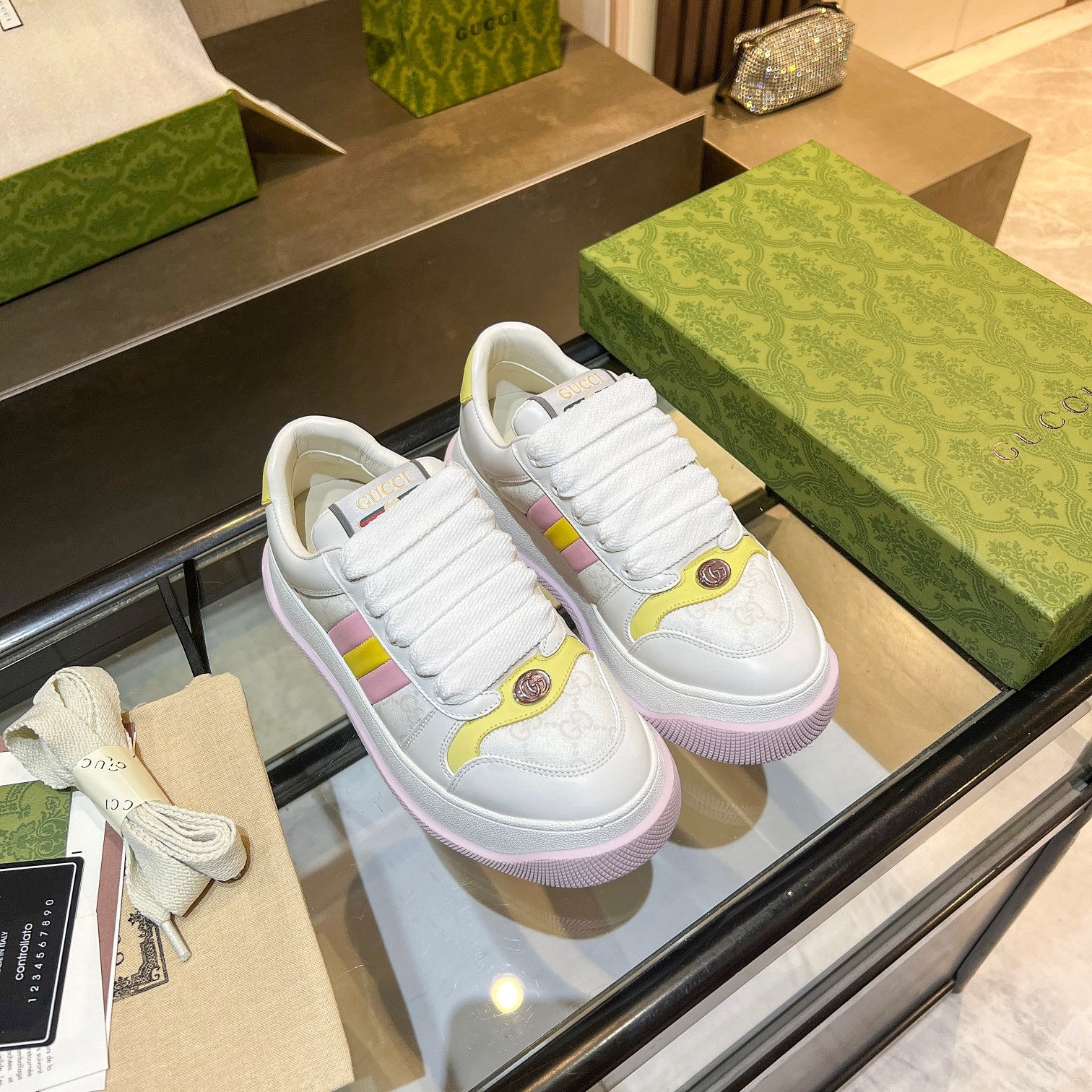 GG Men's Screener Sneaker White Canvas Sheepskin 523605
