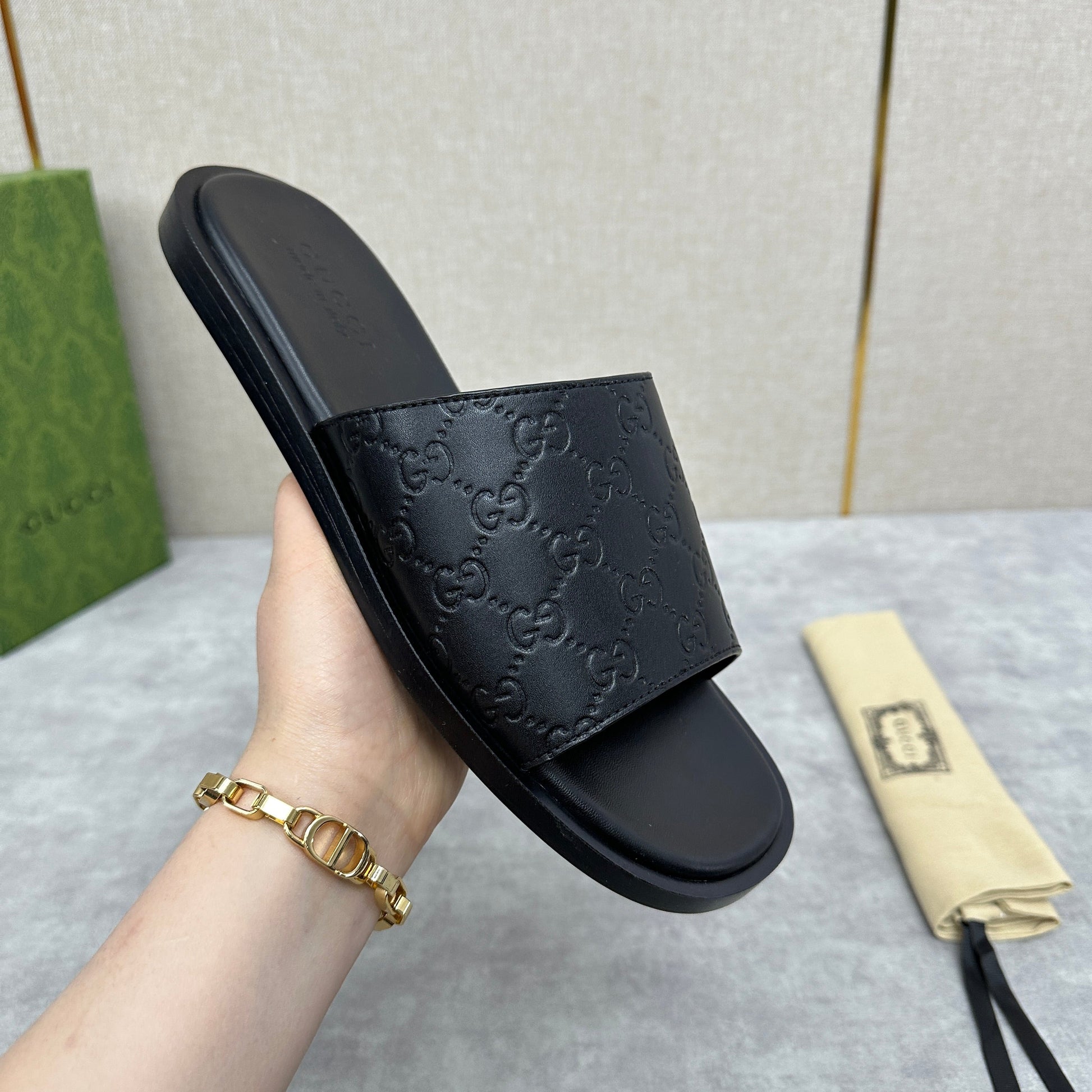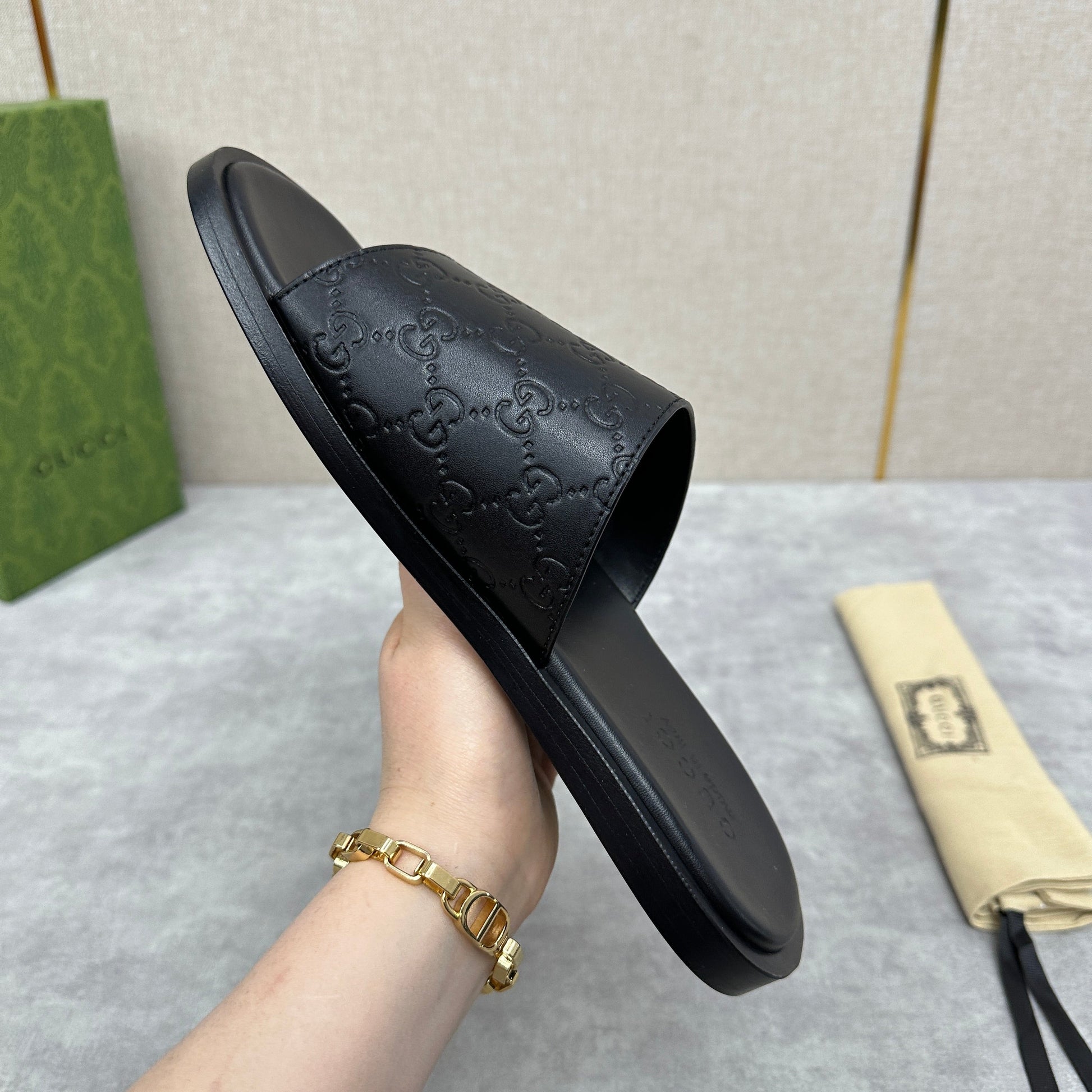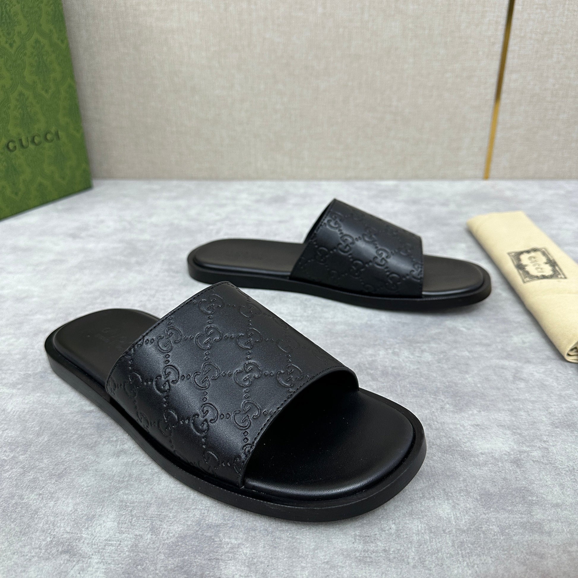 GG Men's slide black cowhide 542957