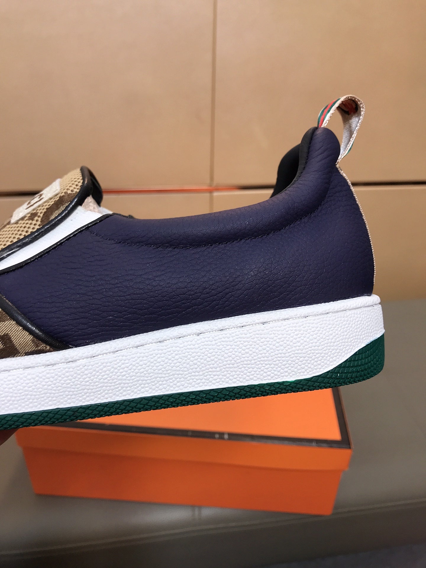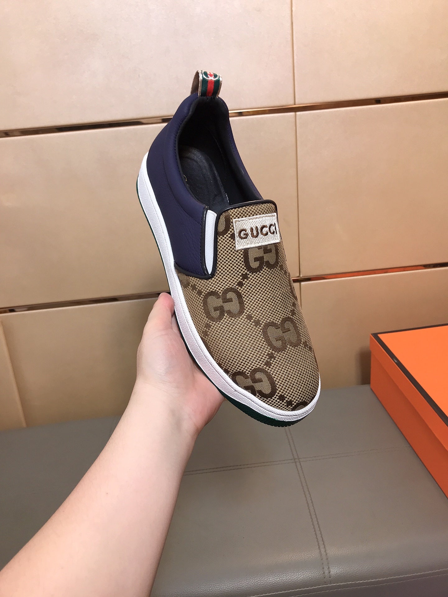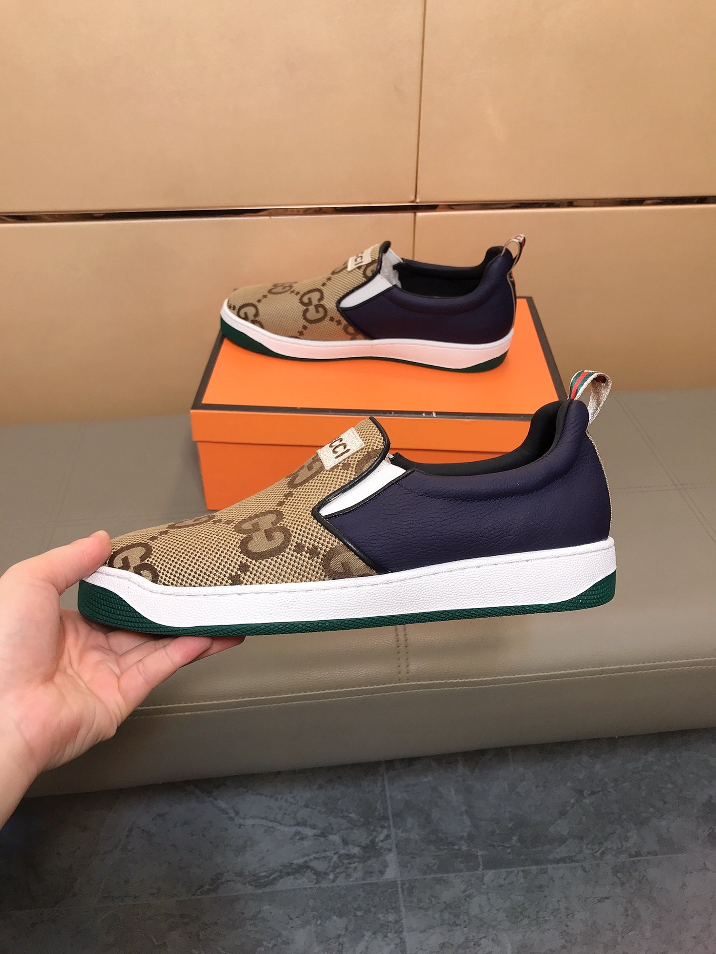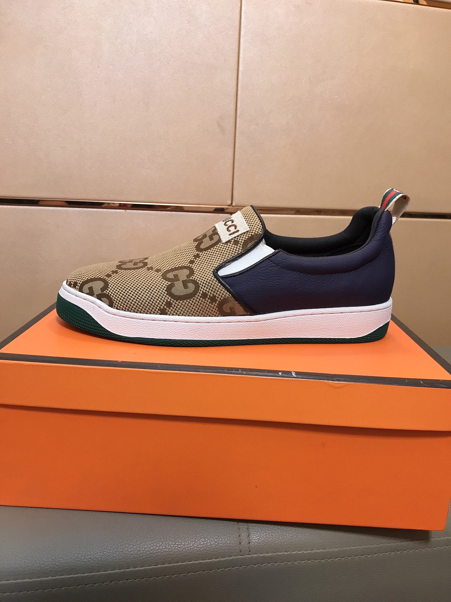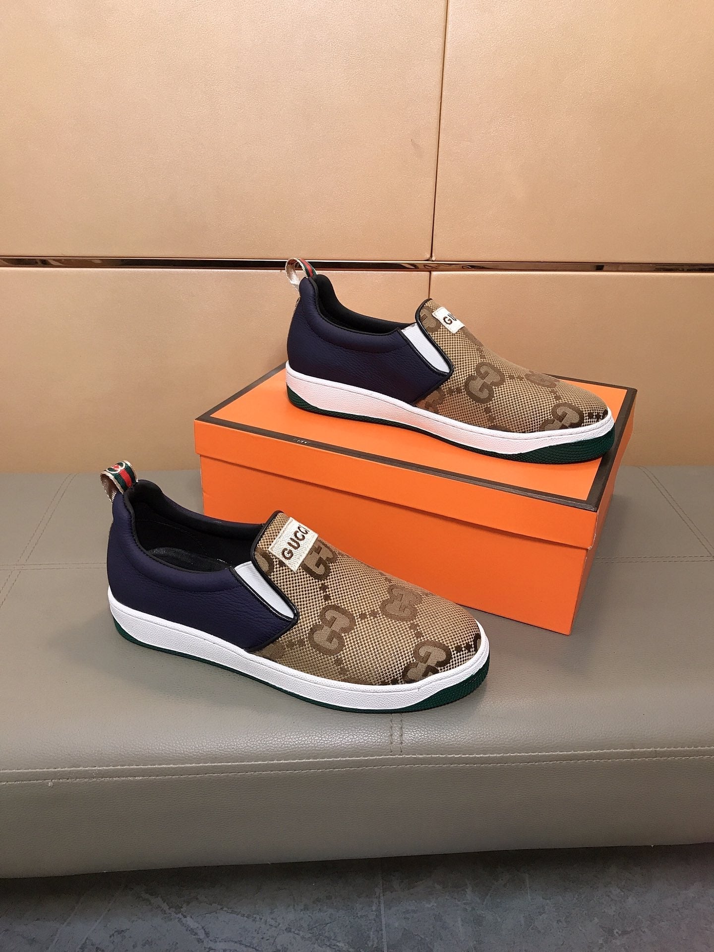 GG Men's Slip On Brown Cowhide Printed Fabric 525192