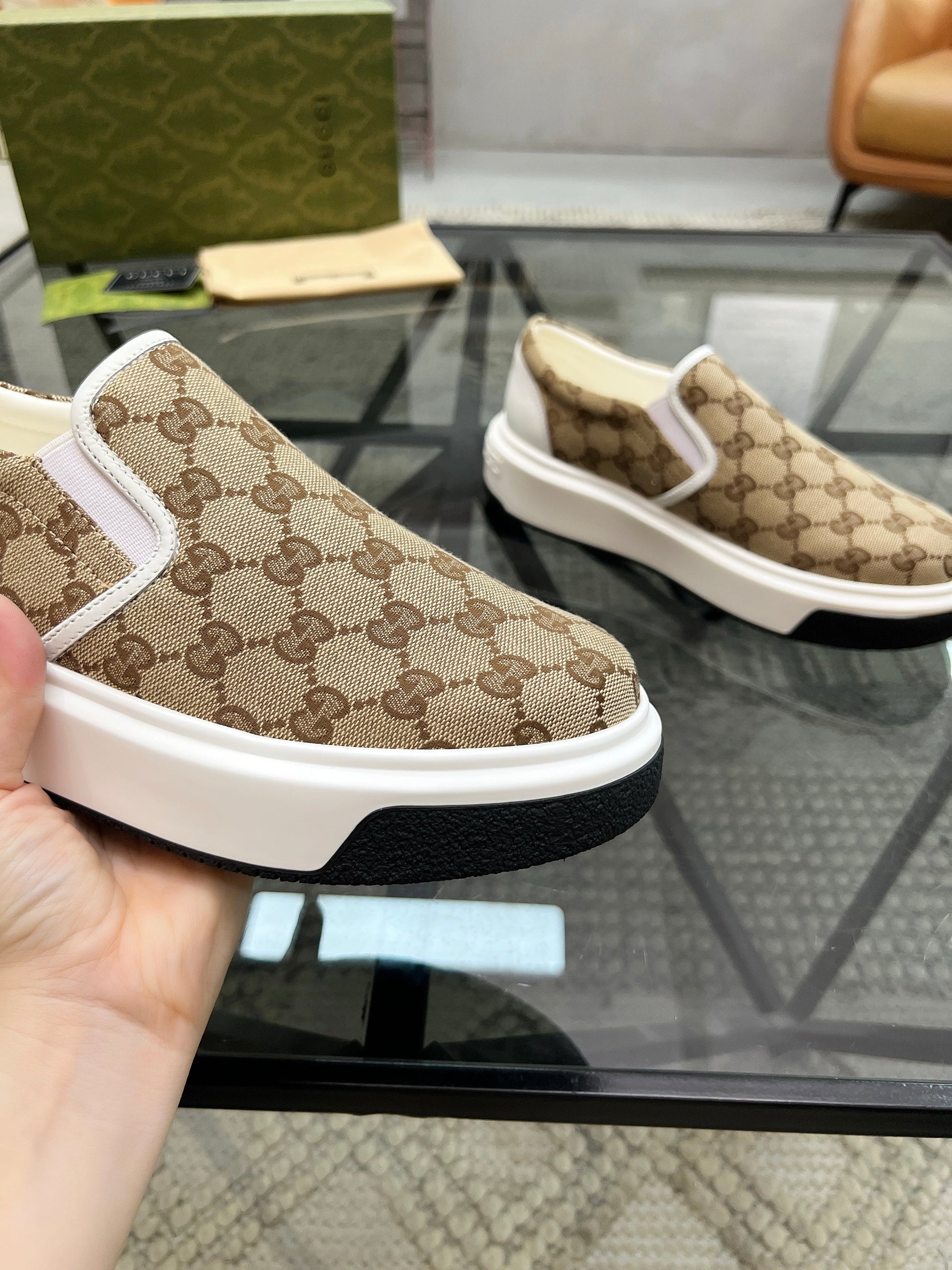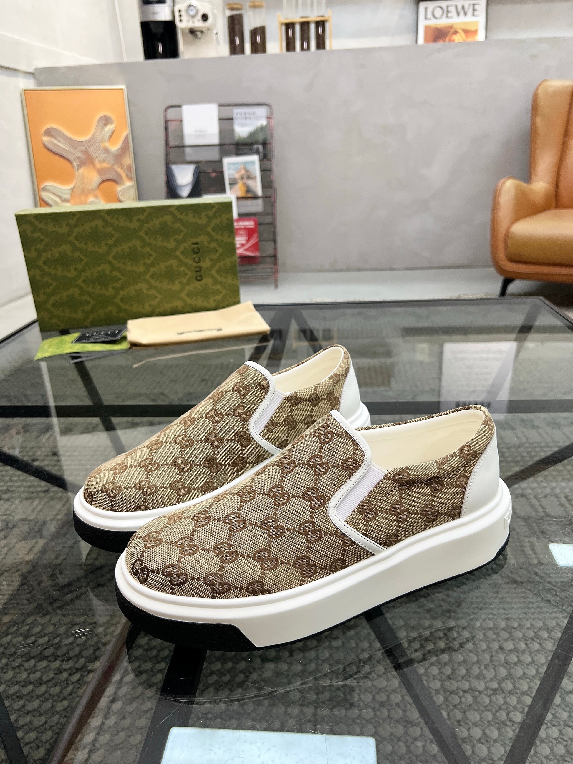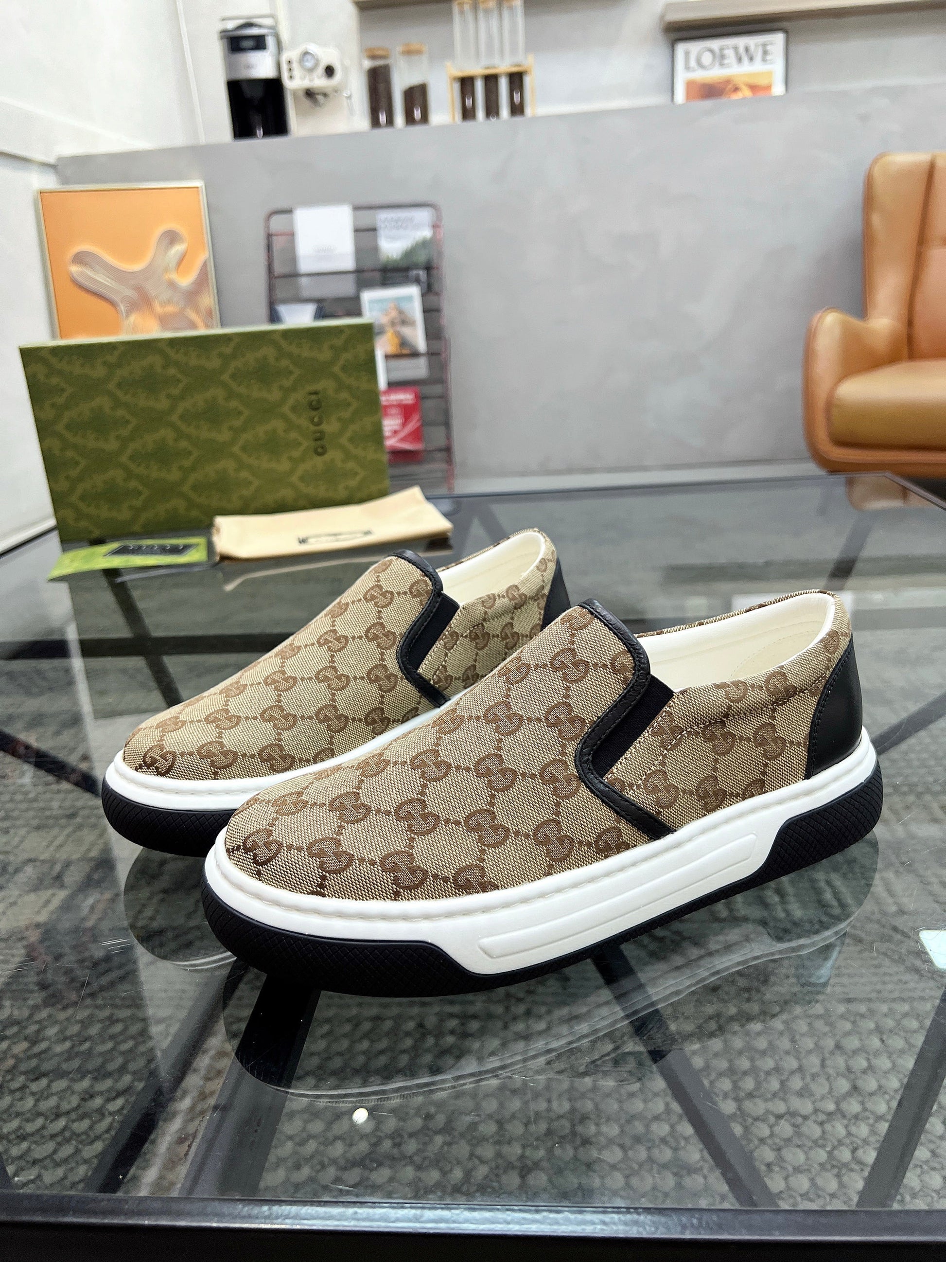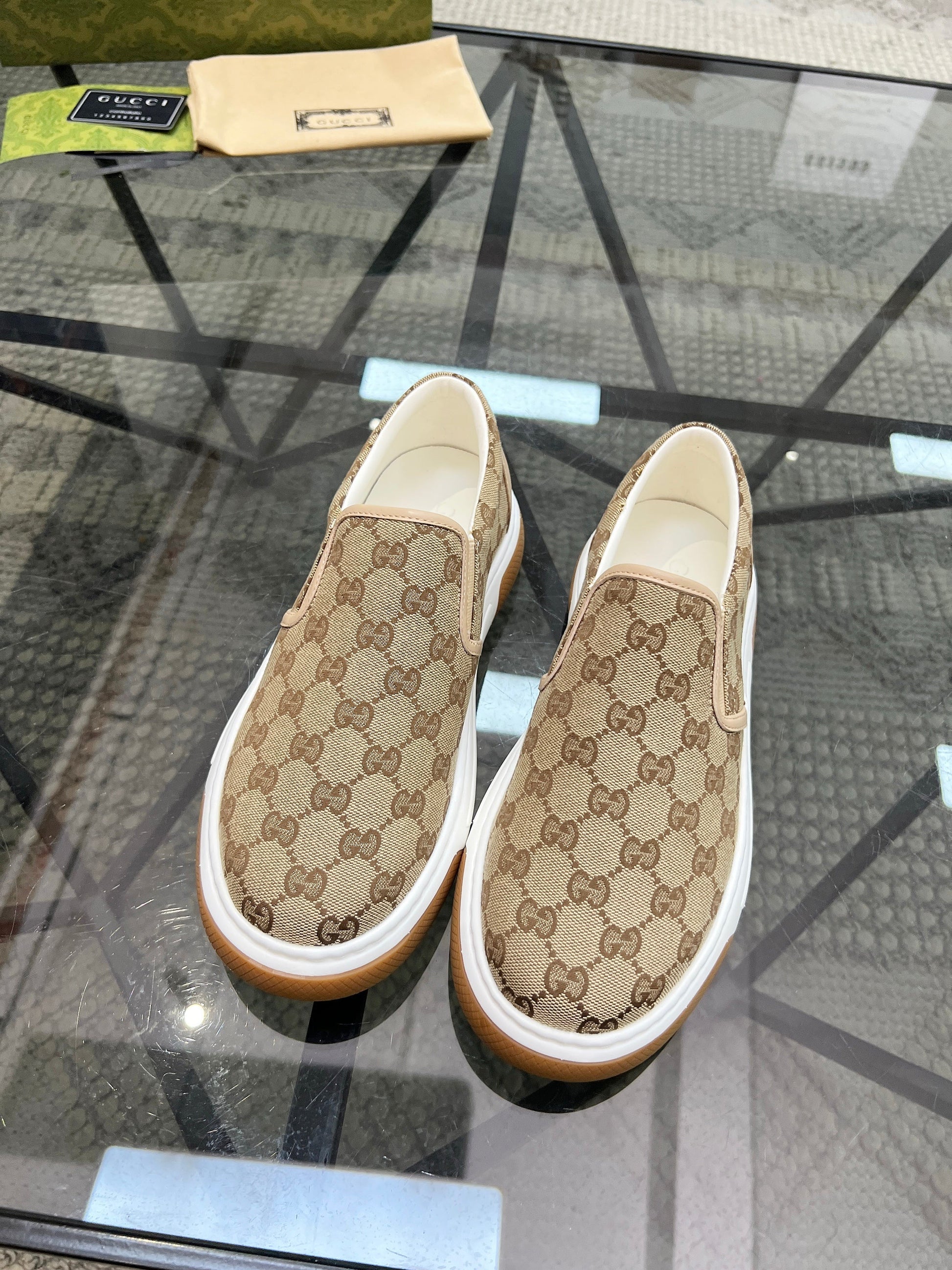 GG Men's Slip on Loafer Brown Printed Fabric 721584
