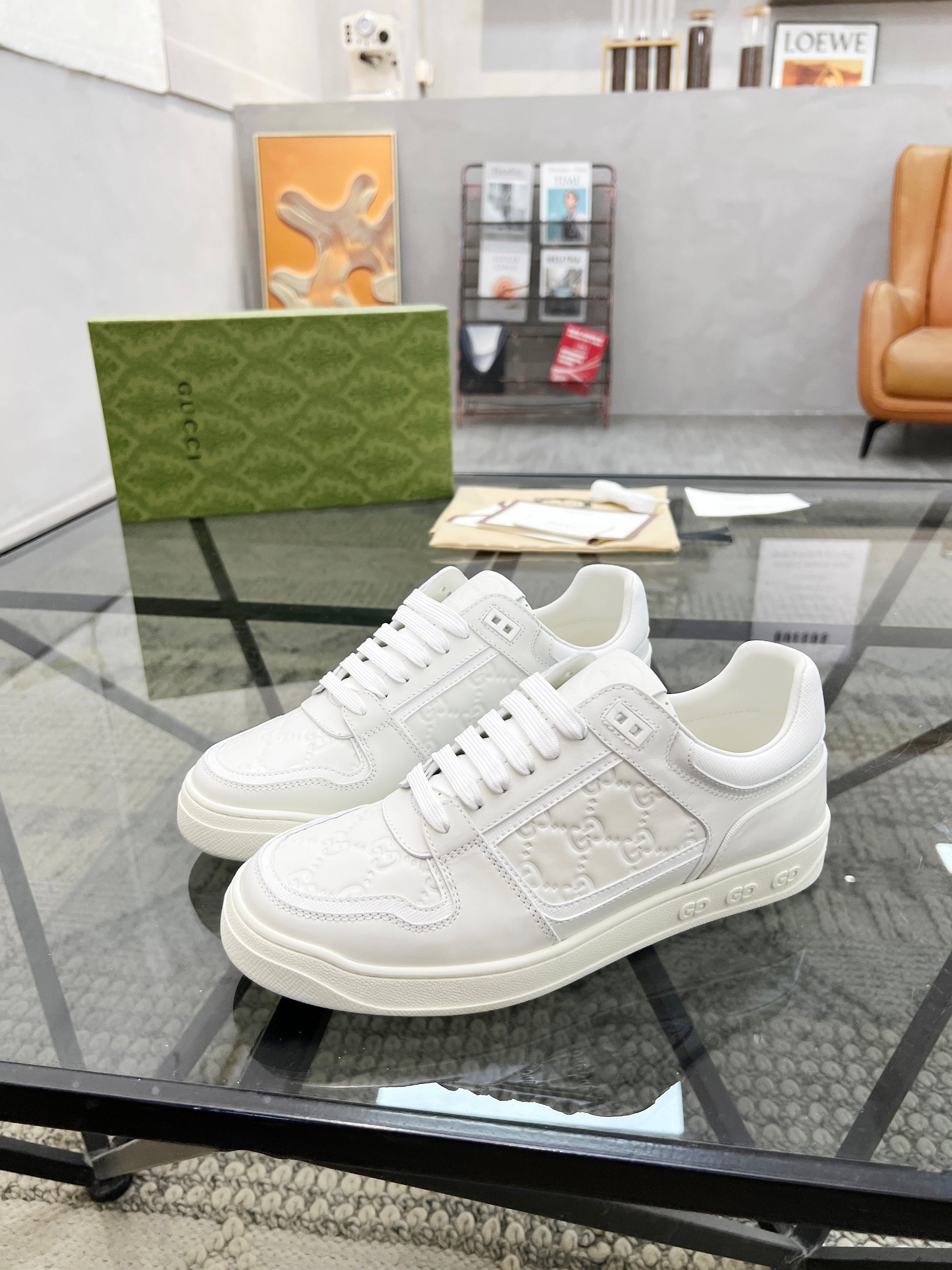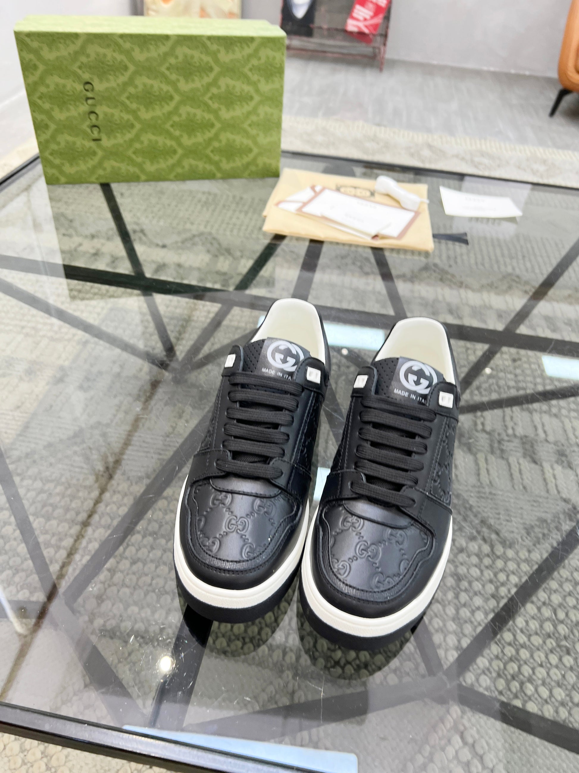 GG Men's Sneaker Black White Embossed Cowhide 525909