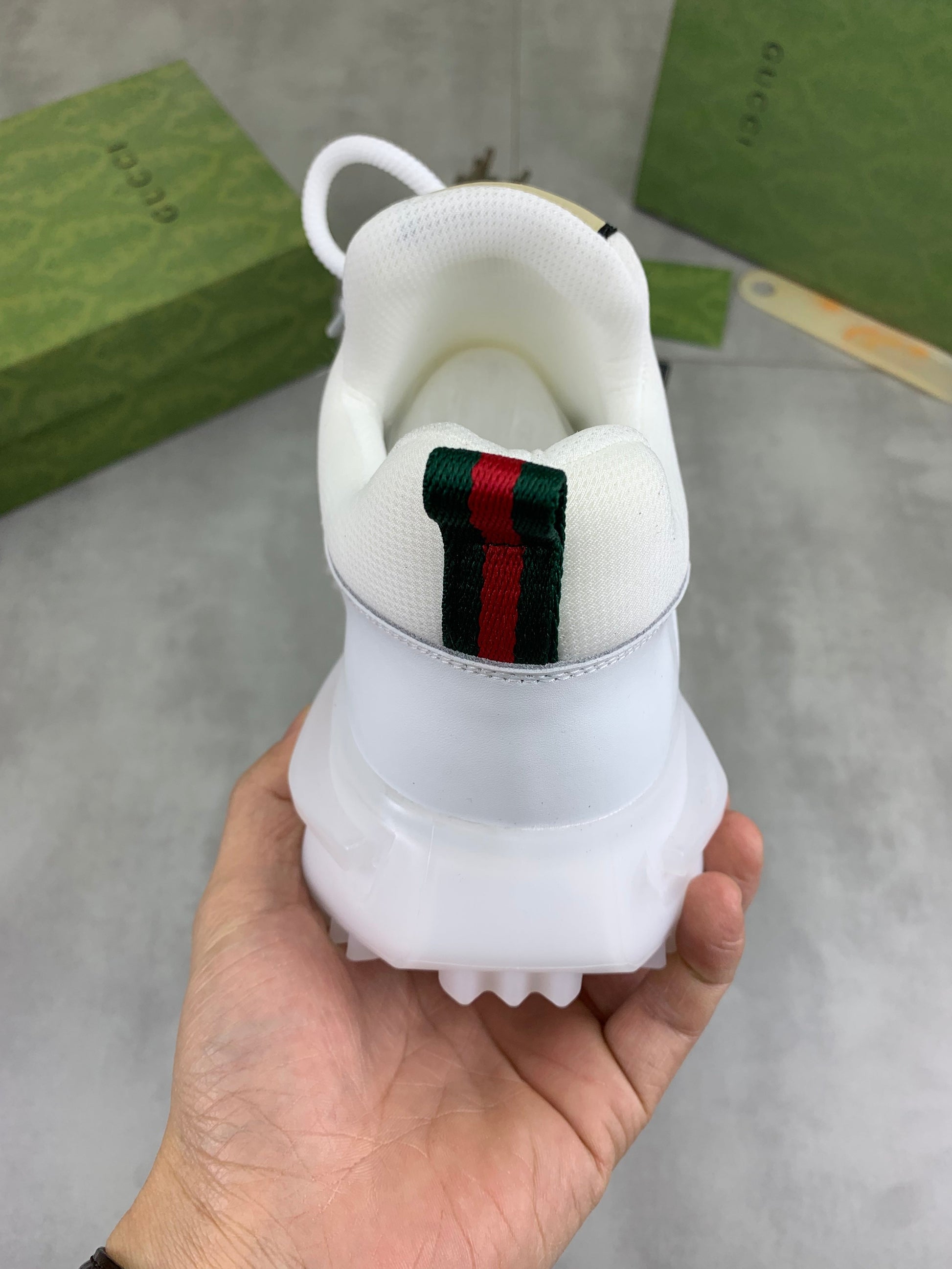 GG Men's Sneaker White Brown Calfskin Canvas 528940