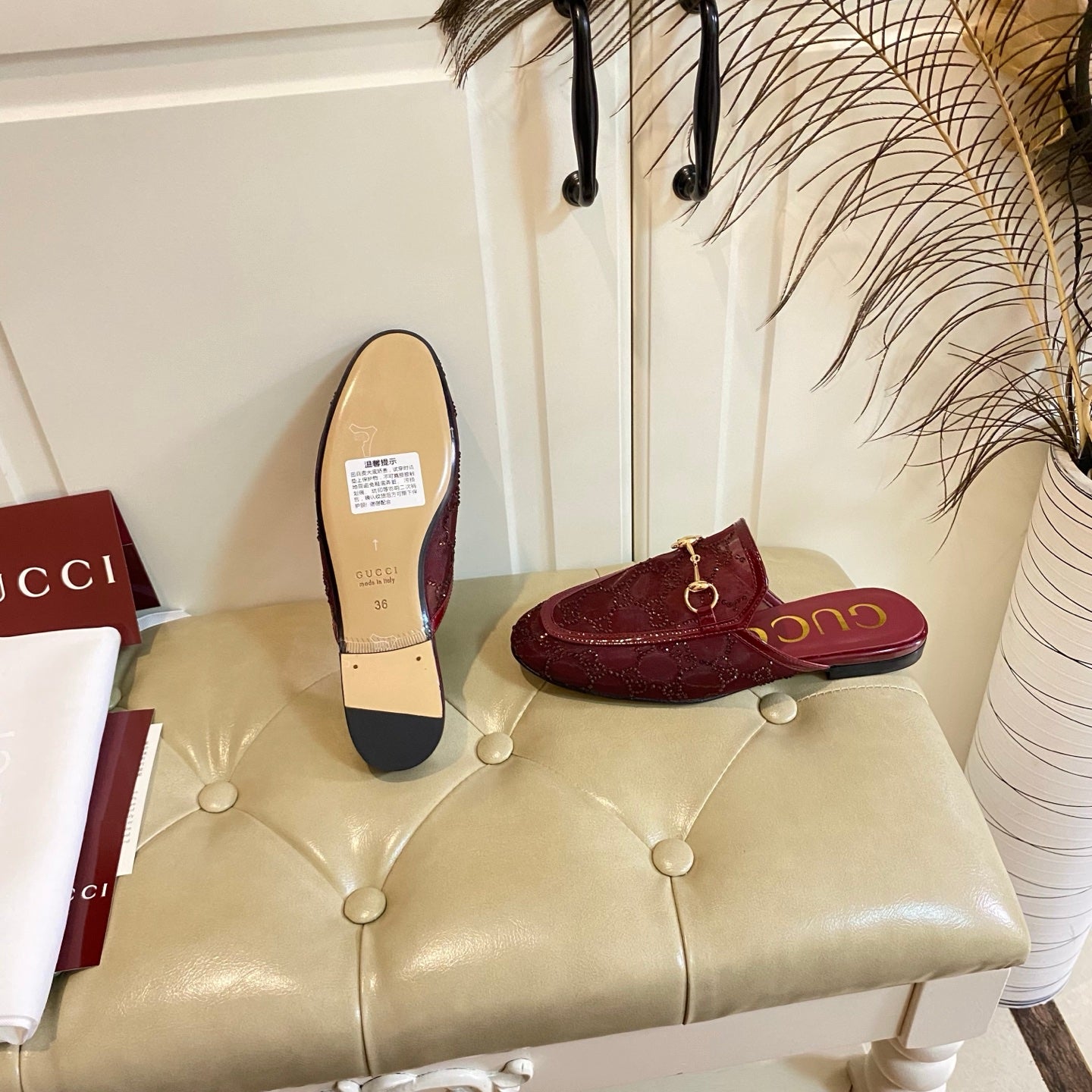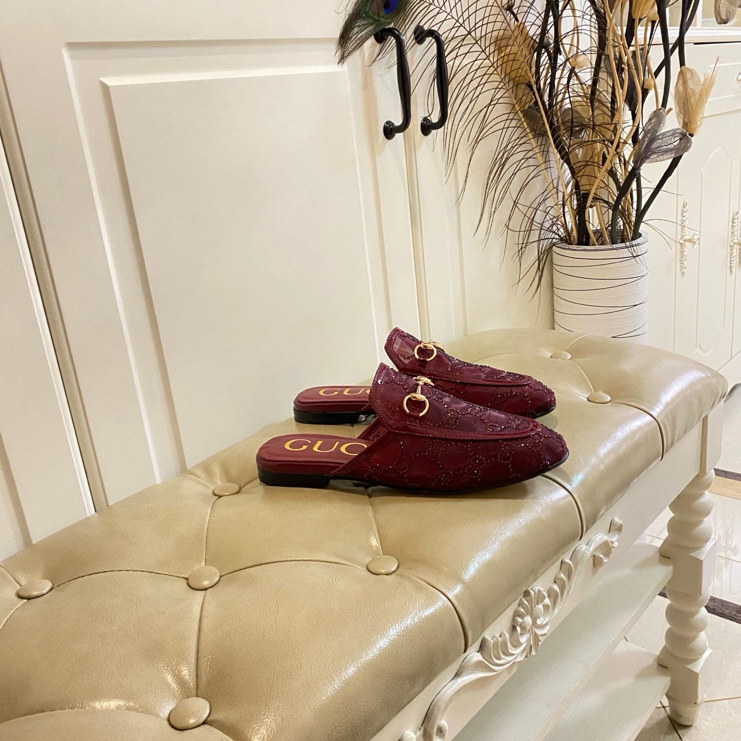 GG PrinceTown Mule Dark Red Mesh With Crystal