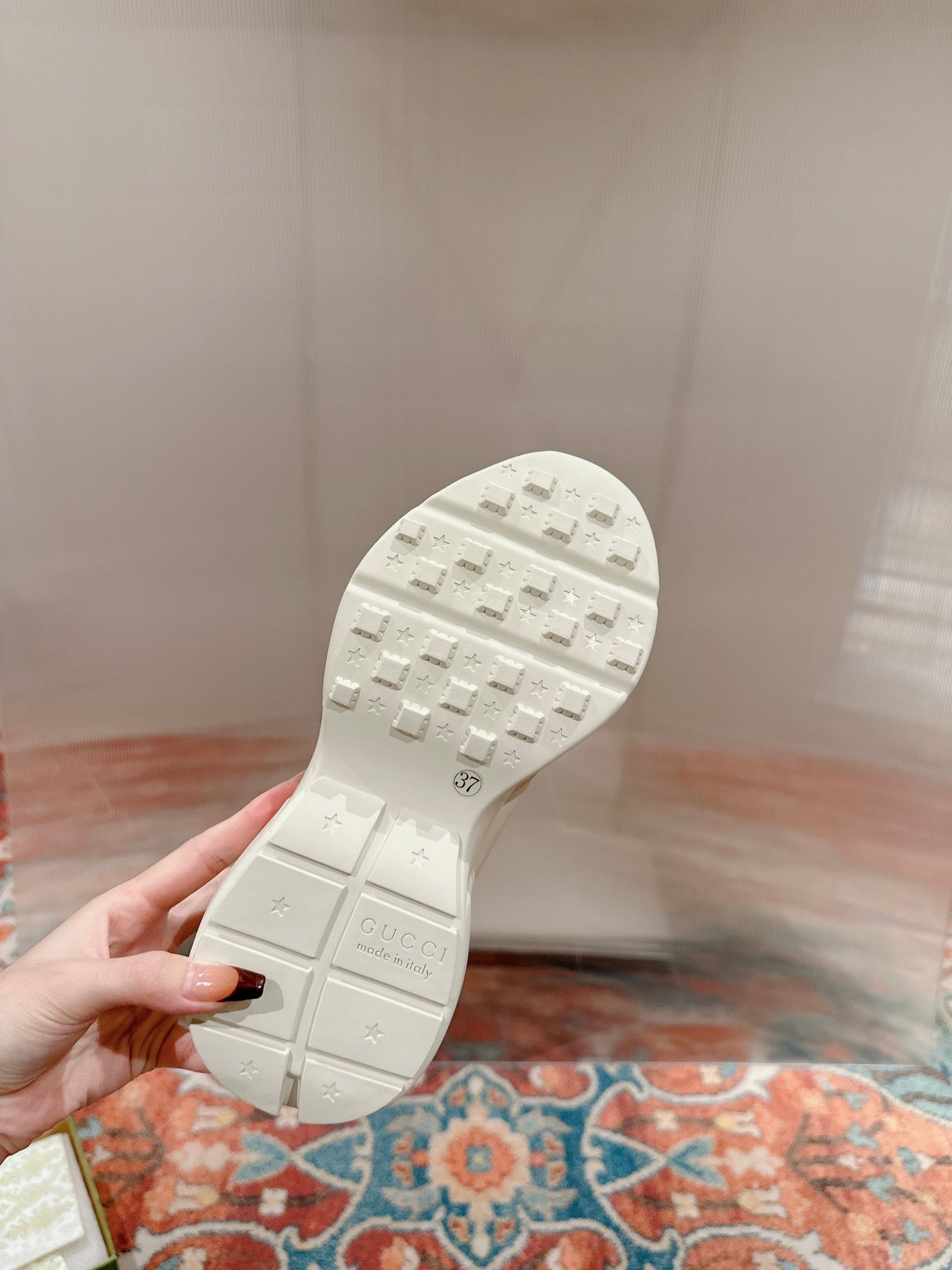 GG RHYTON TRAINER WHITE CALFSKIN WITH PINK LOGO