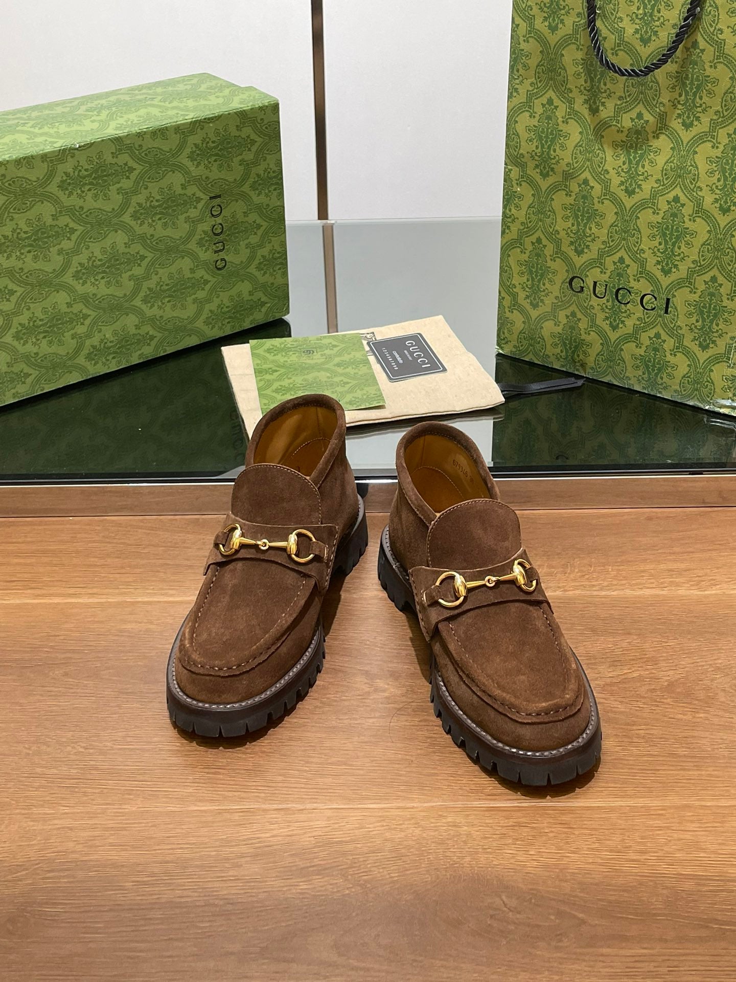 GG WOMEN'S HORSEBIT ANKLE BOOT IN DARK BROWN SUEDE