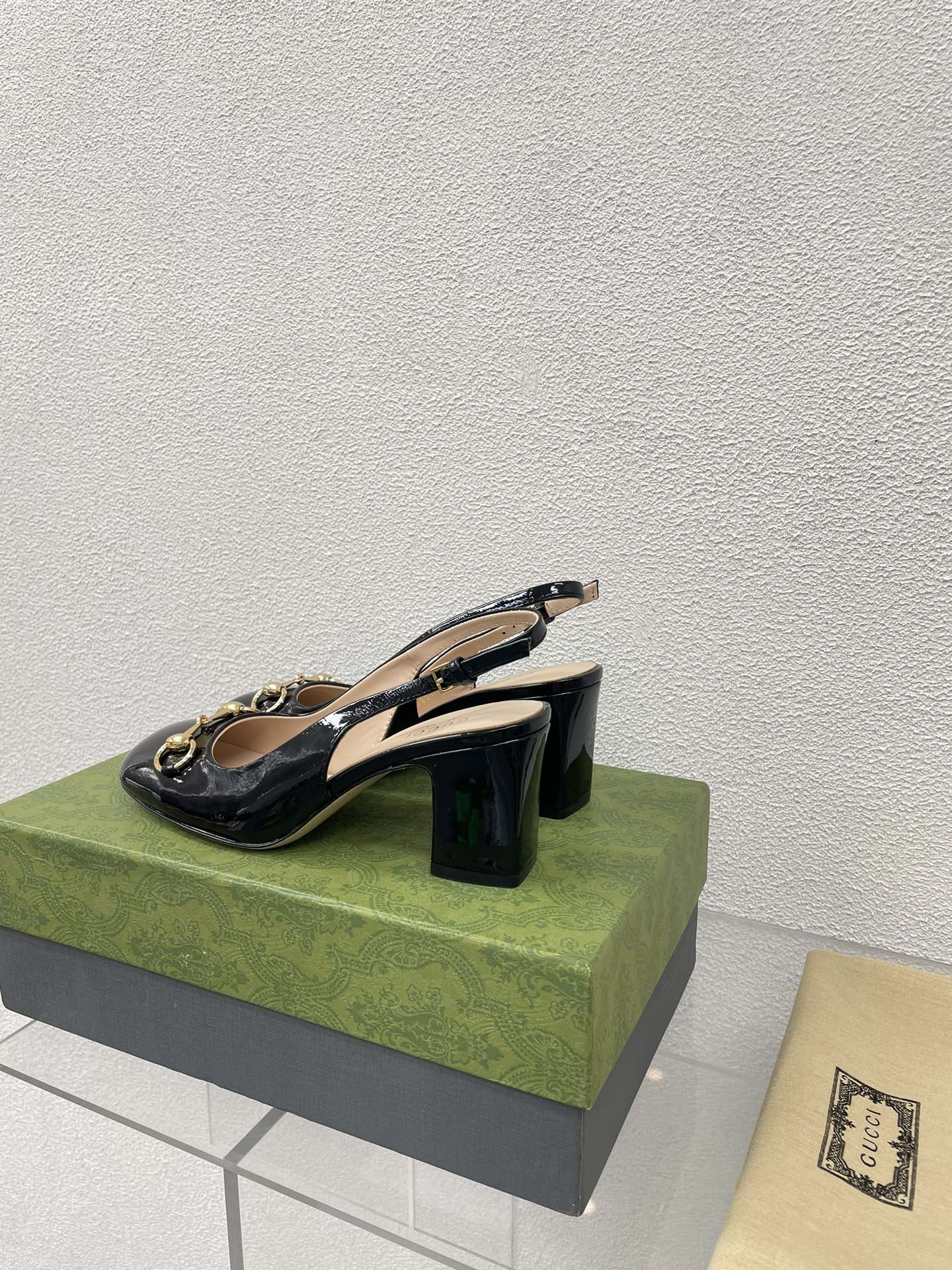 GG WOMEN'S HORSEBIT SLINGBACK 75MM IN BLACK CALFSKIN