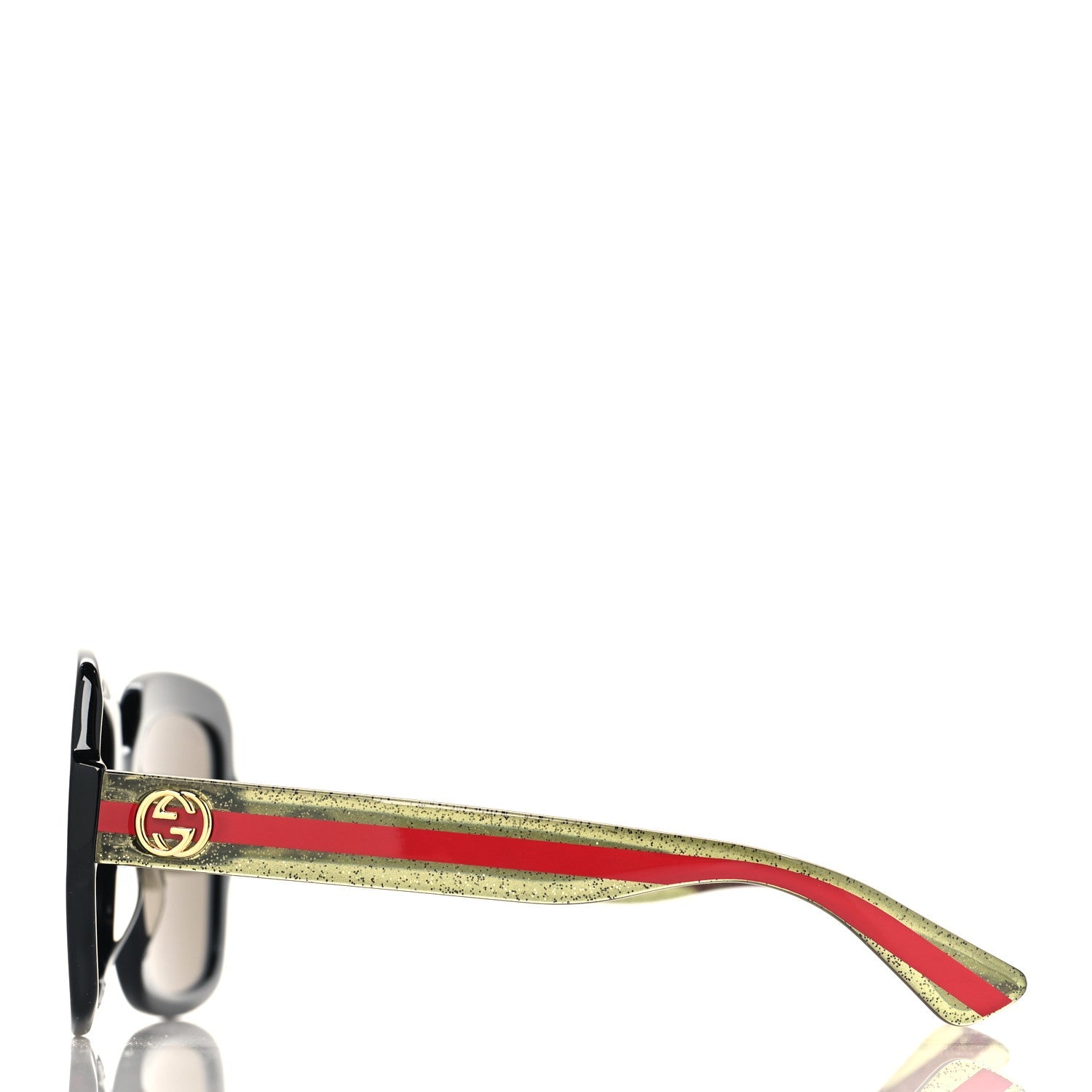 Acetate Square Frame Web Glitter Sunglasses GG0036SN Black Green