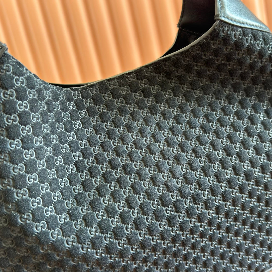 Gucci Body Double Lock Handbag Black Velvet Embossed Leather 248133