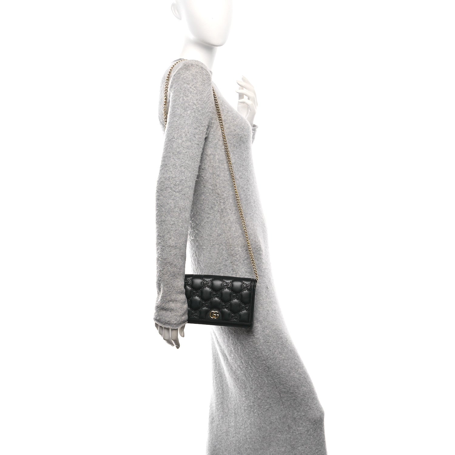 Calfskin GG Matelasse Chain Wallet Black