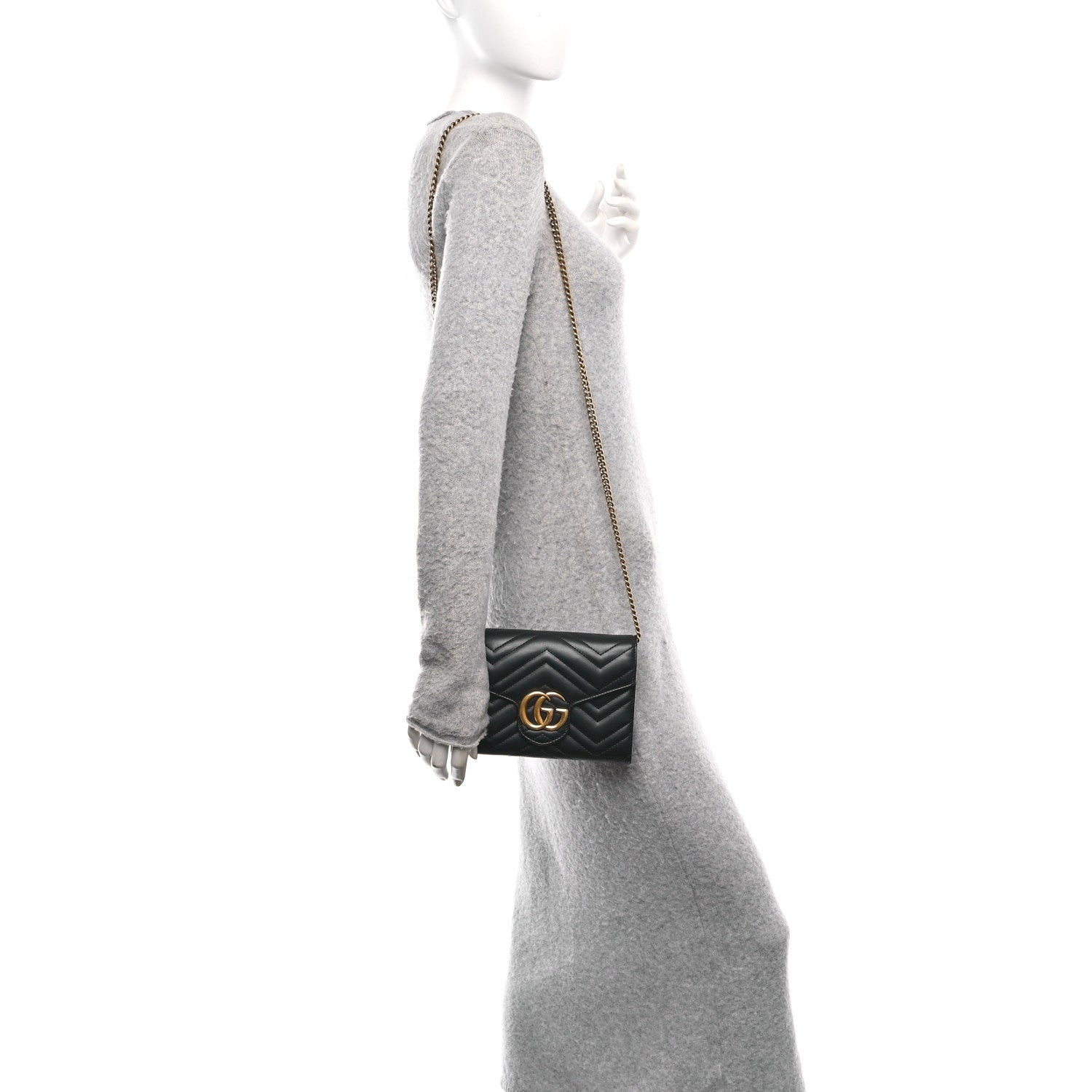 Calfskin Matelasse GG Marmont Chain Wallet Black
