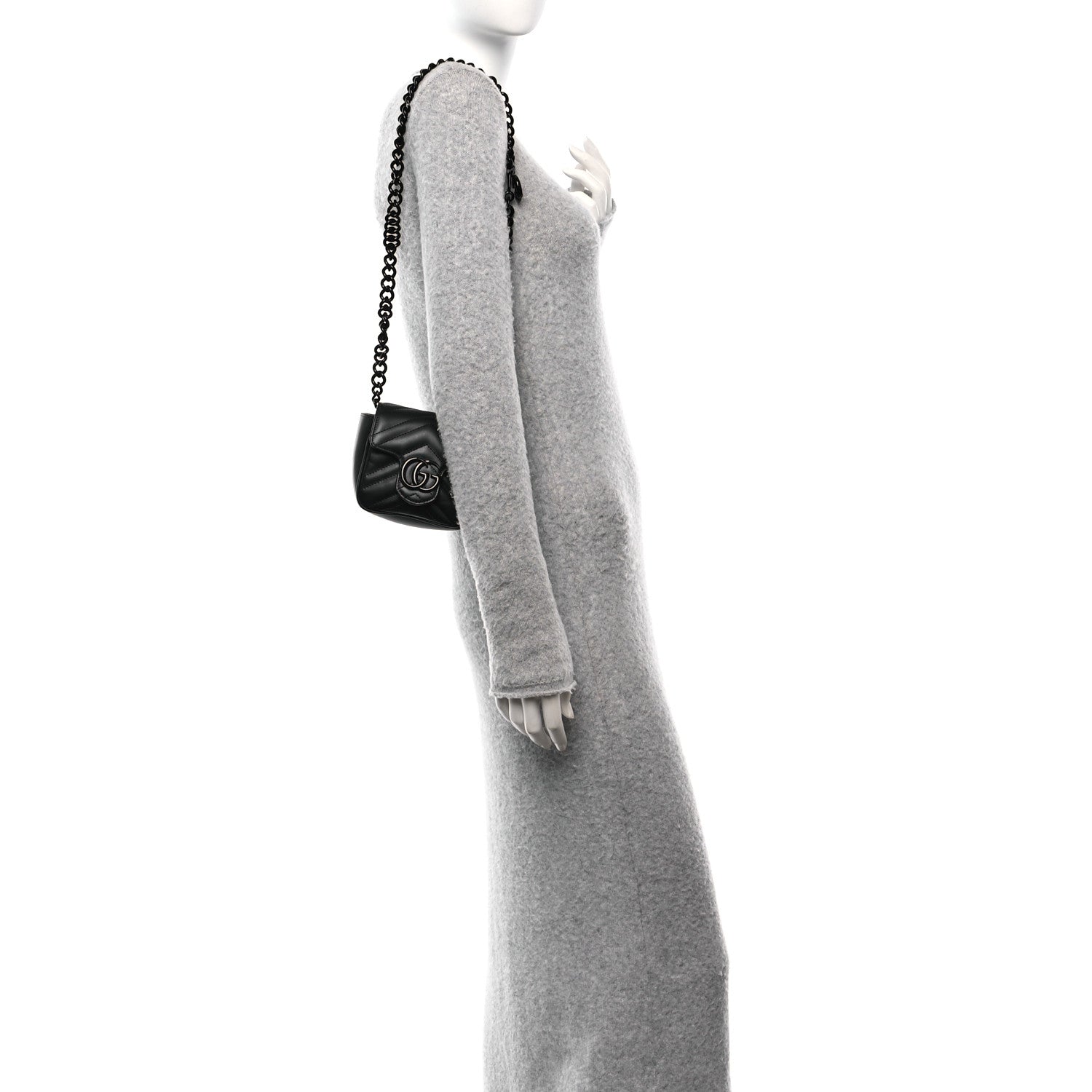 Calfskin Matelasse Monochrome GG Marmont Chain Mini Belt Bag Black