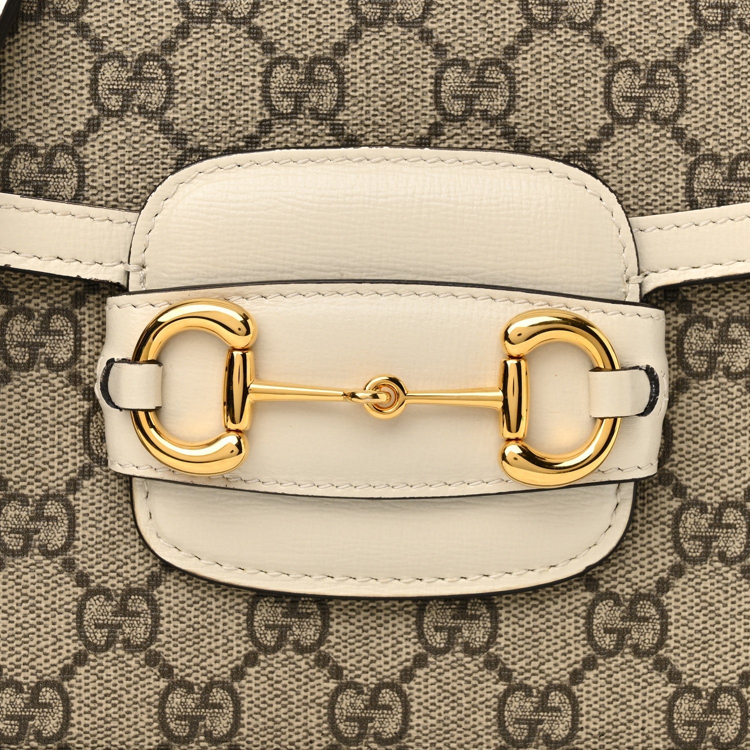 GG Supreme Monogram Horsebit 1955 Shoulder Bag Beige Mystic White