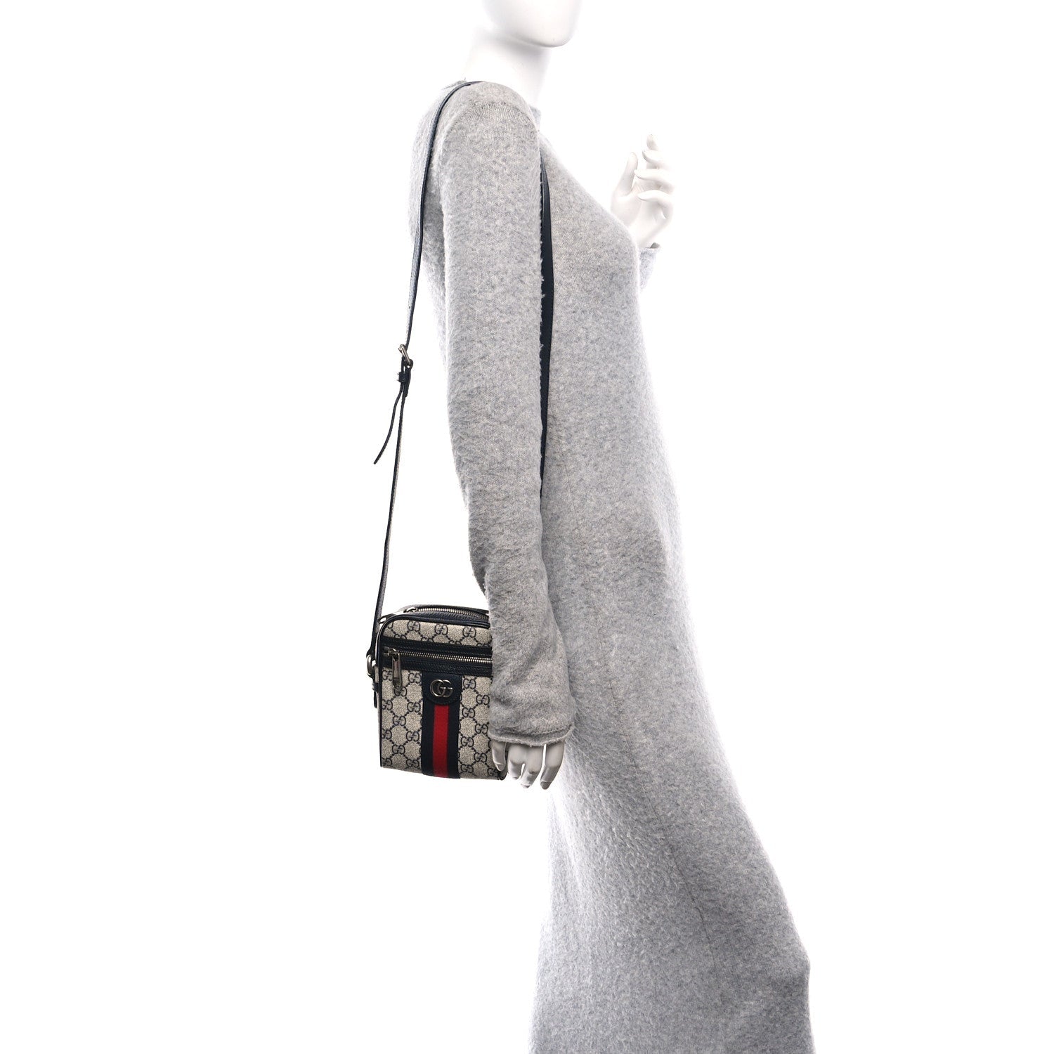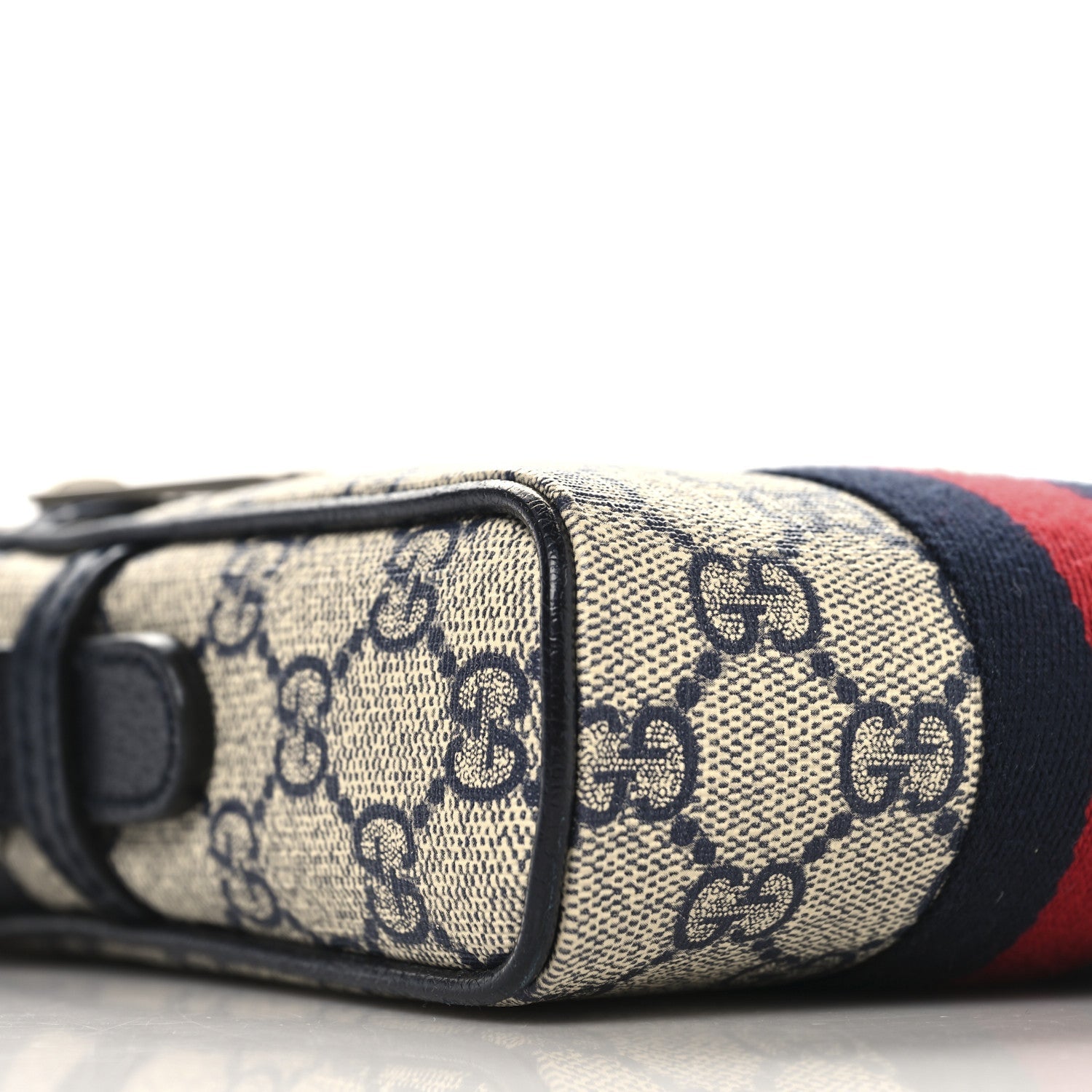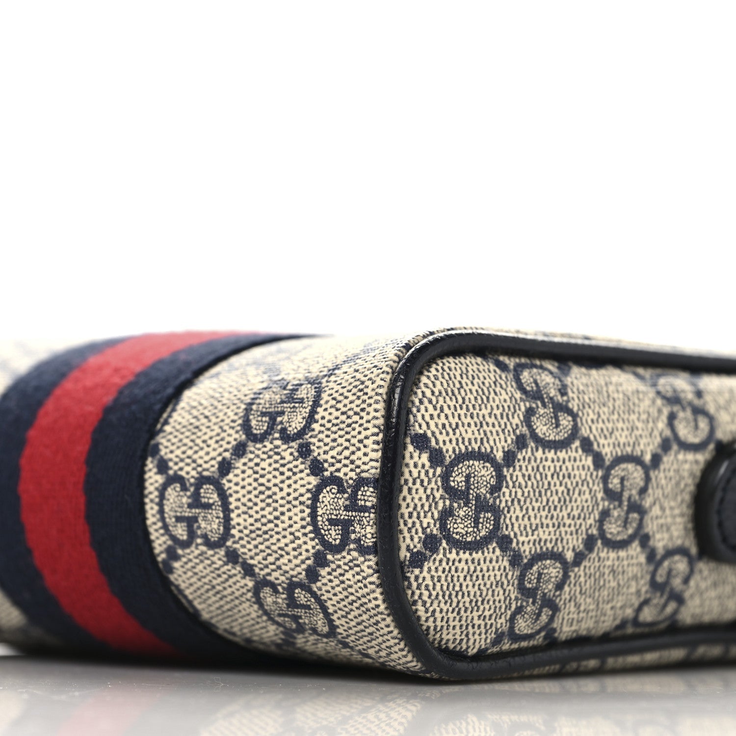 GG Supreme Monogram Textured Calfskin Web Mini Ophidia Messenger Beige Blue