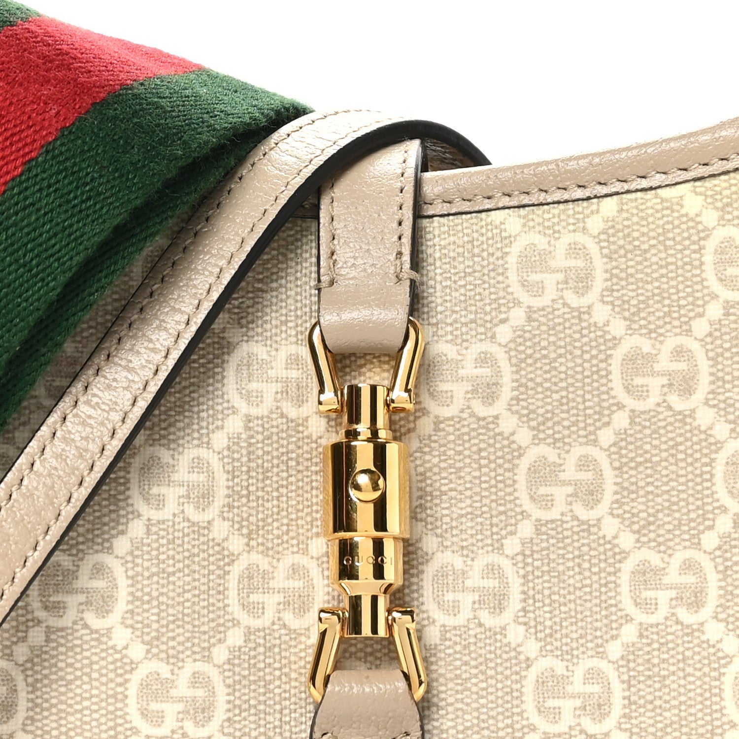 GG Supreme Monogram Textured Dollar Calfskin Mini Jackie 1961 Hobo Beige Mystic White Oatmeal