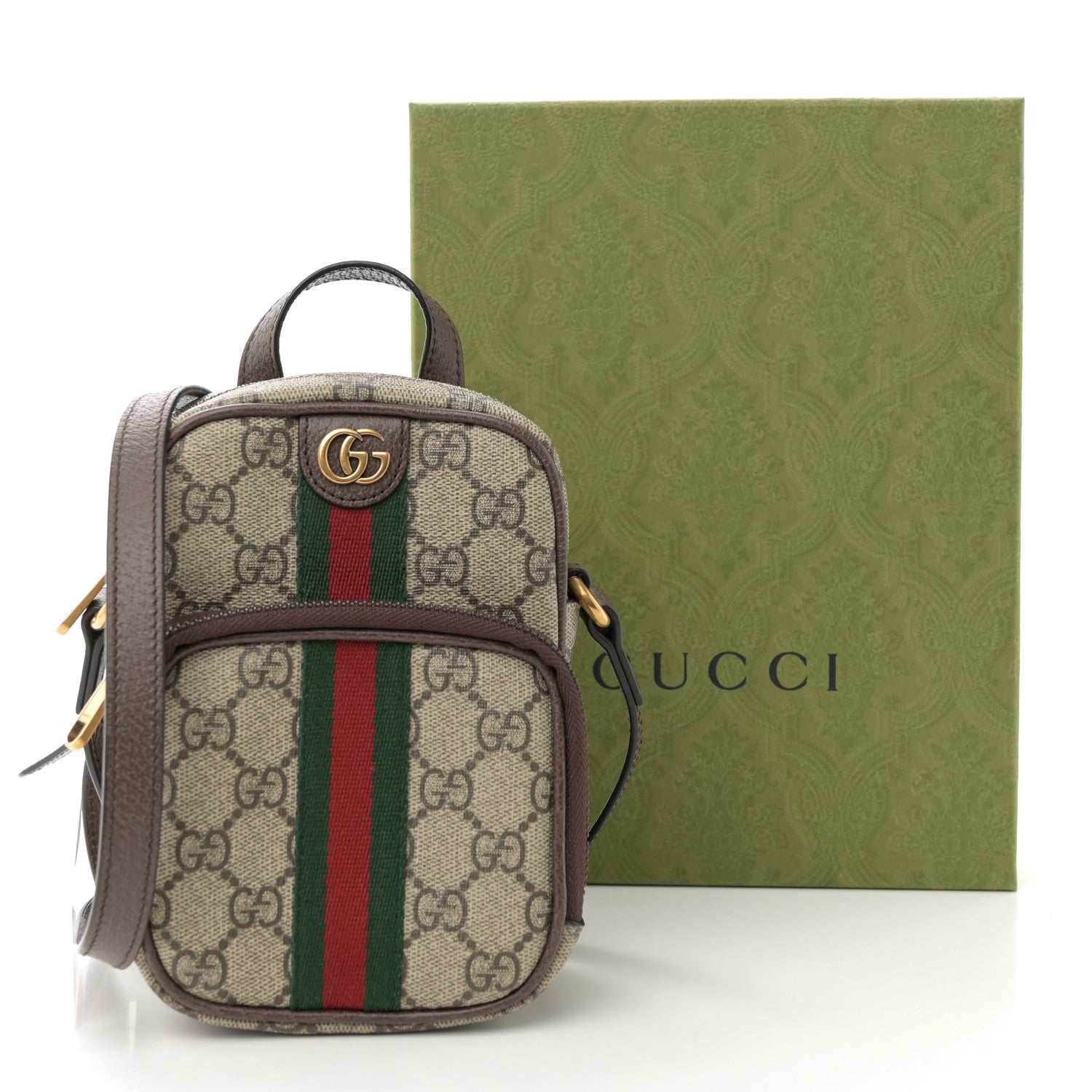 GG Supreme Monogram Web Mini Ophidia Double Zip Messenger Bag Beige New Acero