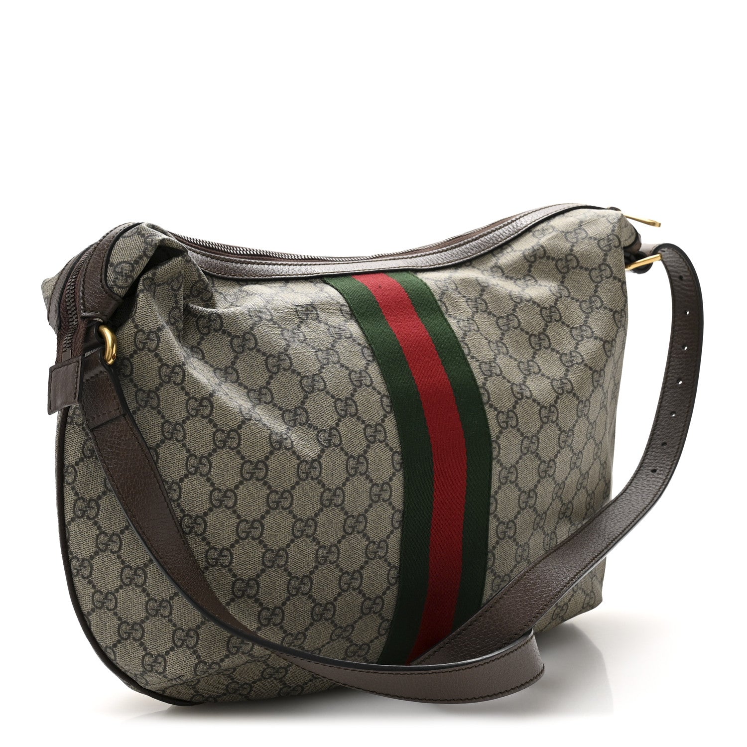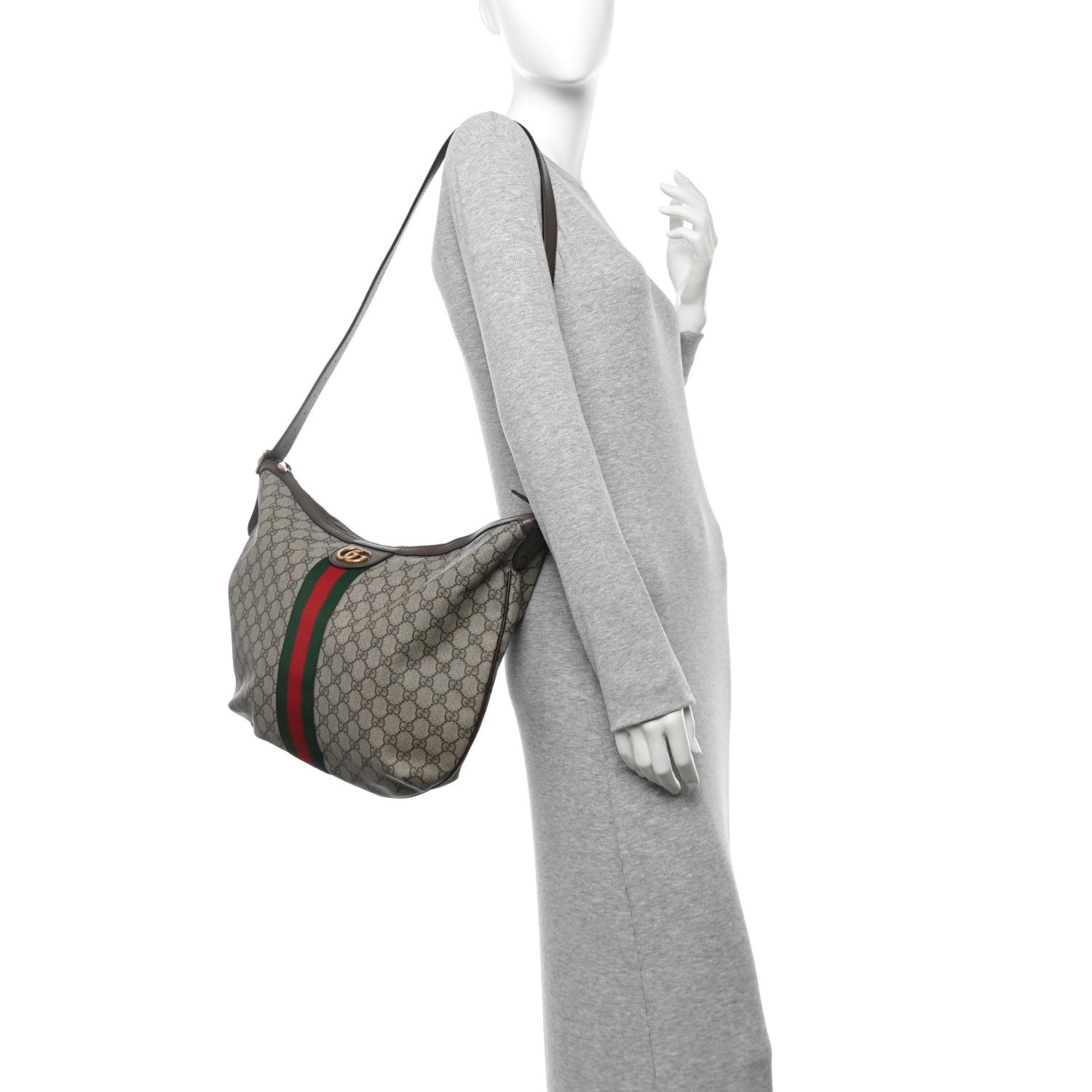 GG Supreme Monogram Web Ophidia Half Moon Hobo Brown