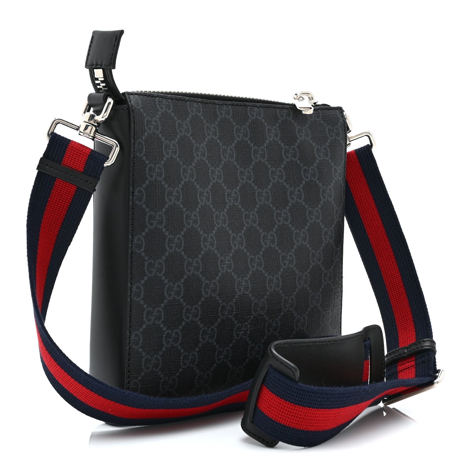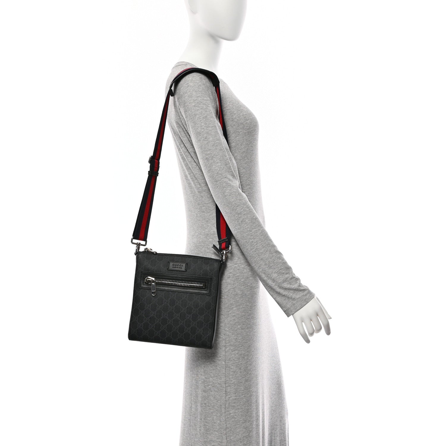 GG Supreme Monogram Web Small Flat Messenger Bag Black Grey