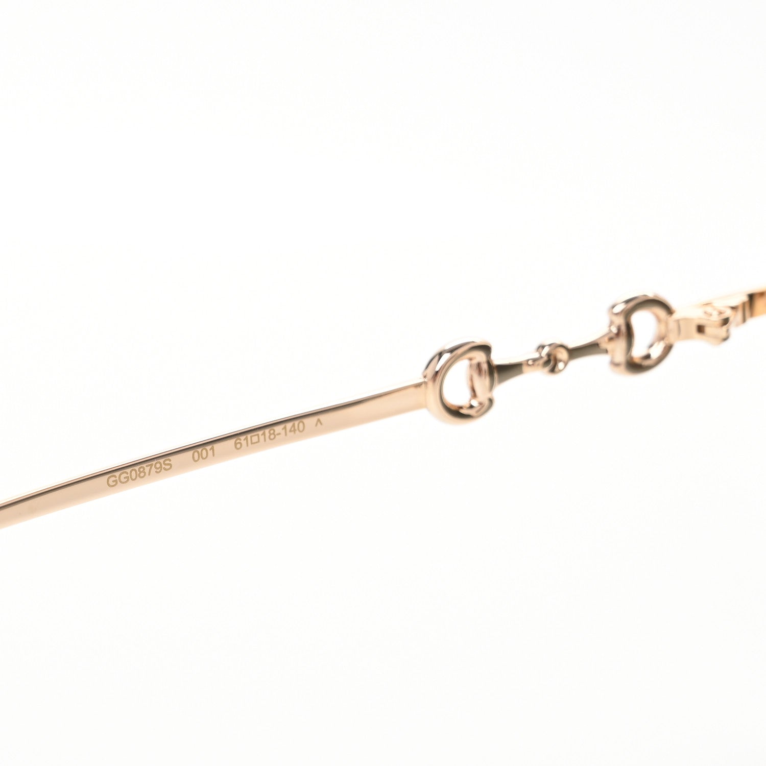 Metal Horsebit Square Frame Sunglasses GG0879S Gold