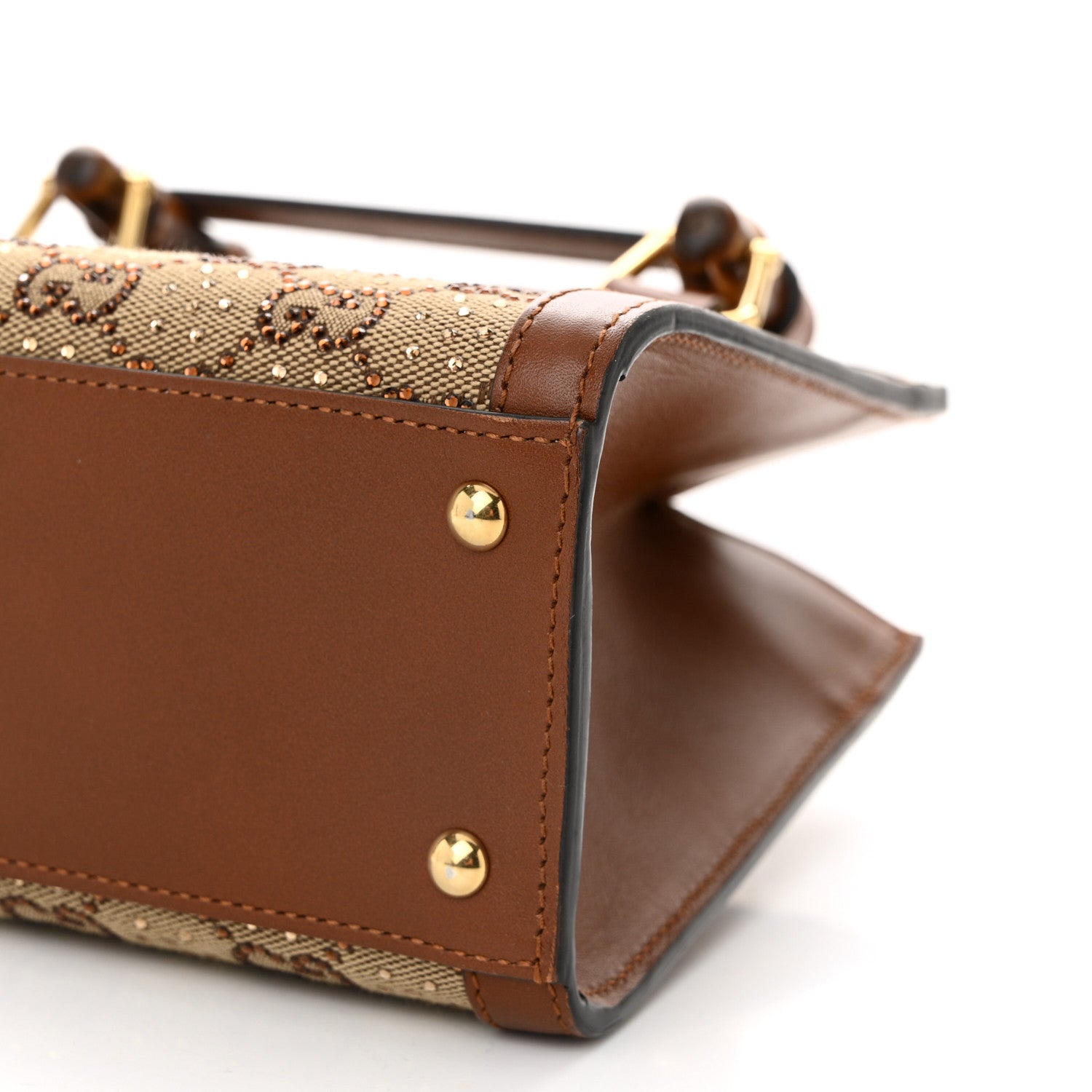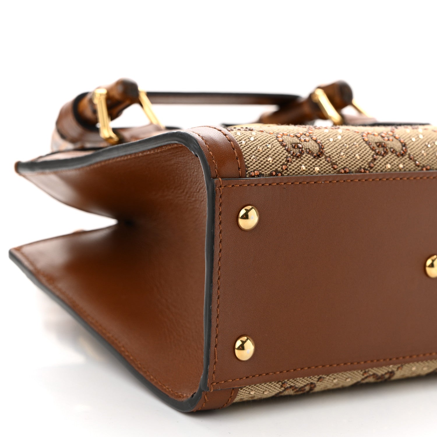 New Canvas Charisma Calfskin Crystal GG Monogram Mini Diana Tote Bag Camel Ebony
