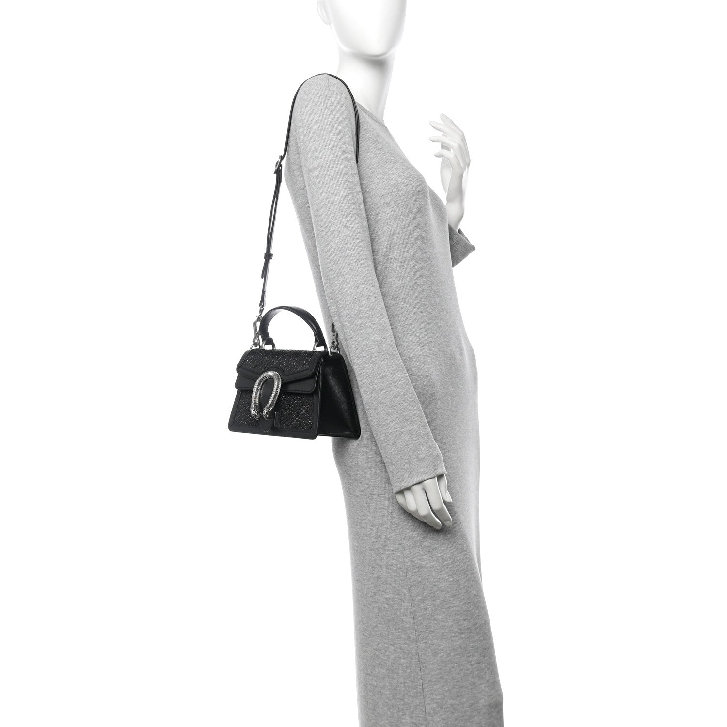 Satin Crystal GG Monogram Mini Dionysus Top Handle Bag Black