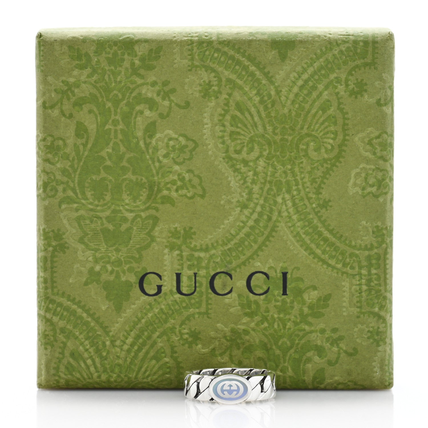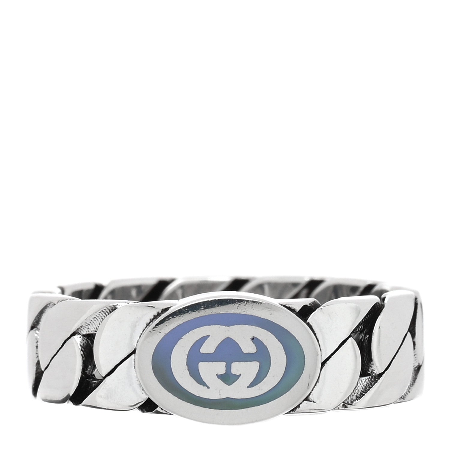 Sterling Silver Enamel Interlocking G Chain Ring 56 7.5 Lavender