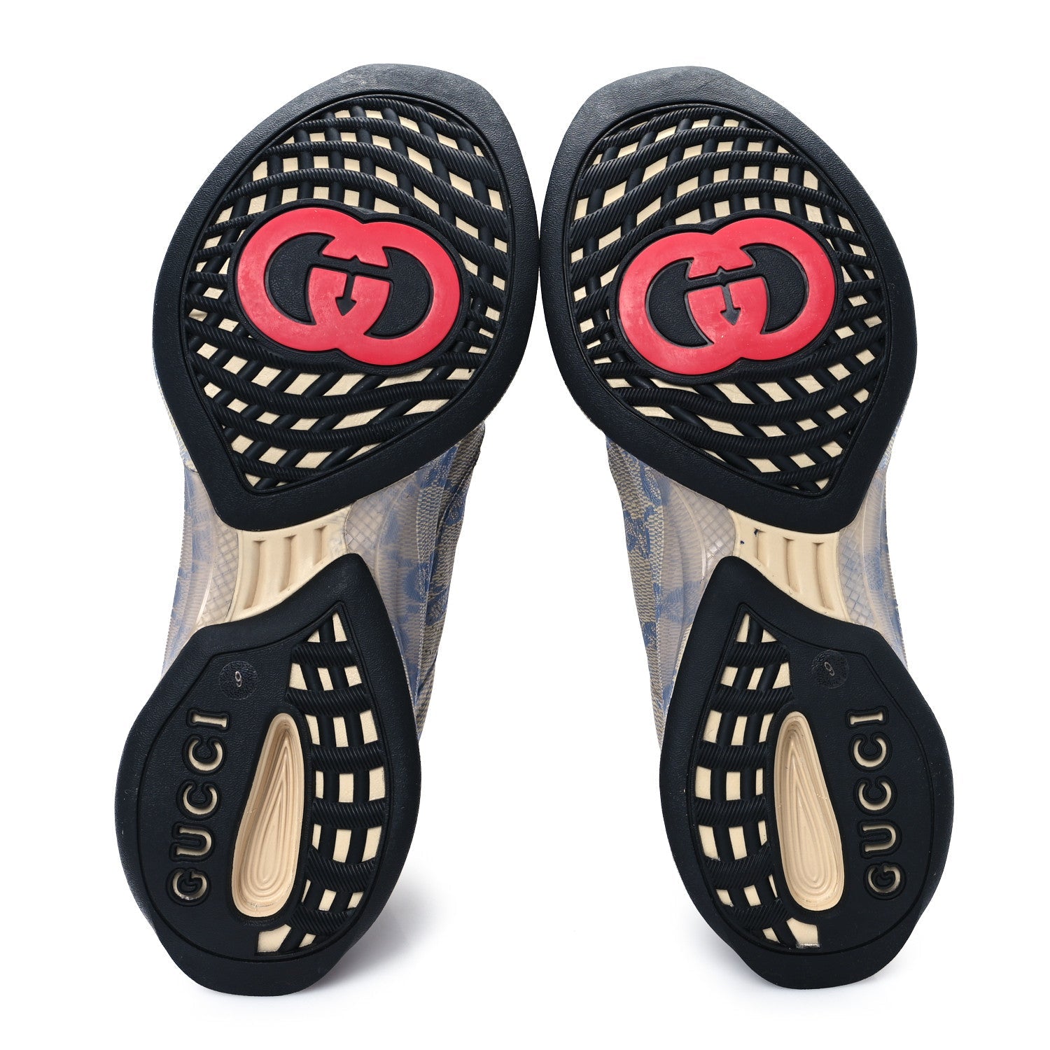 Ultralight Plume Calfskin Monogram Printed Mens Gucci Run Sneakers 9 Beige Blue