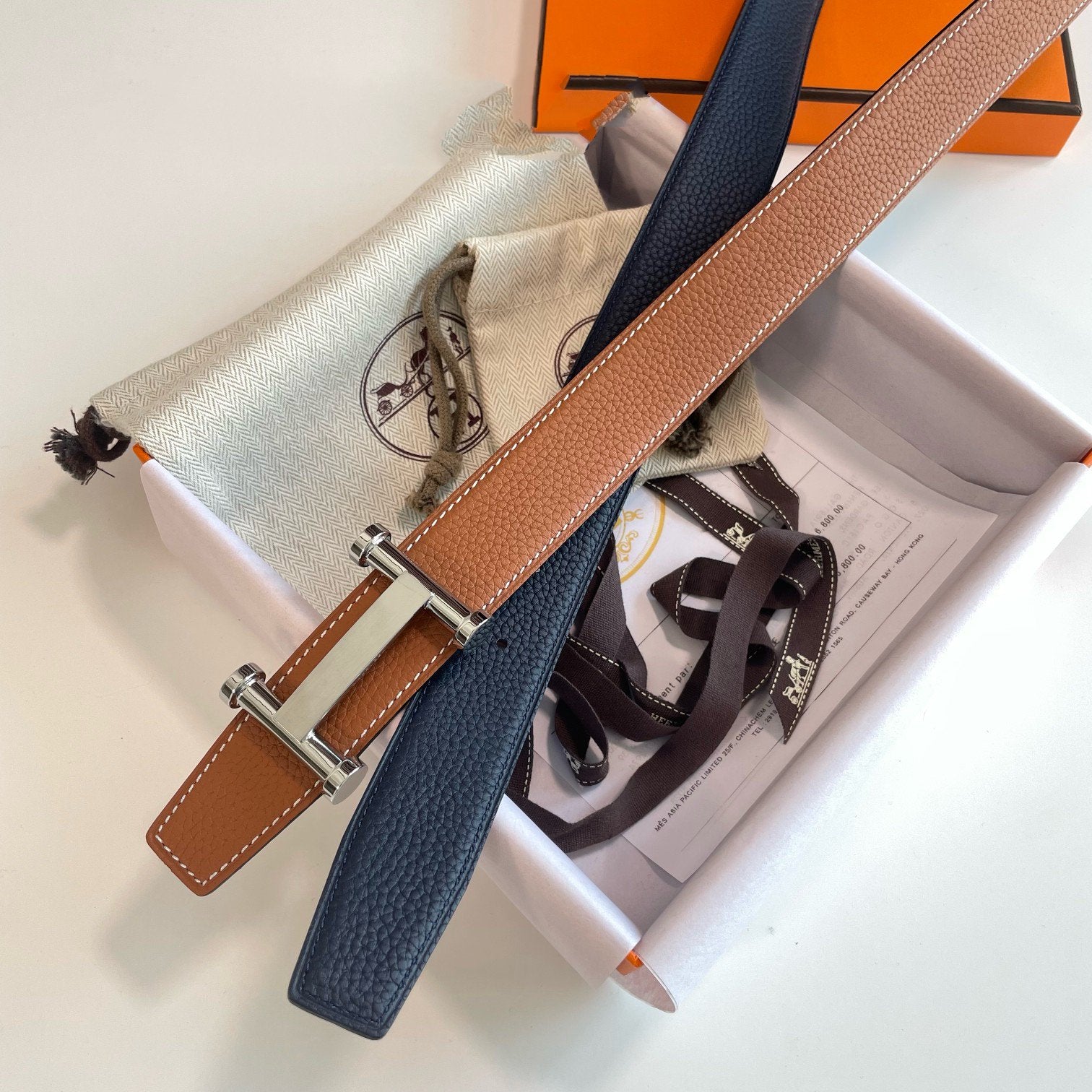 H AGORA BELT 32MM DARK BLUE BROWN LEATHER