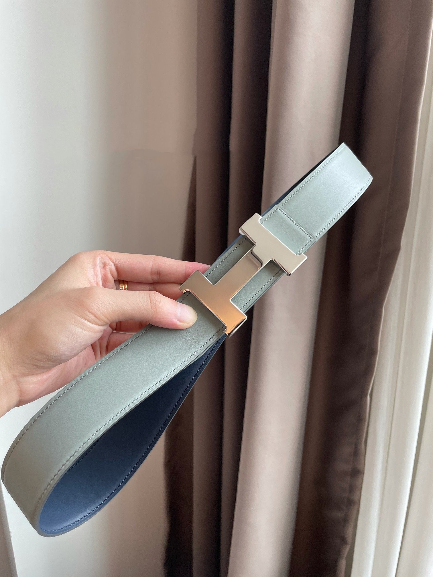 H CONSTANCE BELT 38MM SILVER BUCKLE PRUSSIAN BLUE SKY BLUE LEATHER