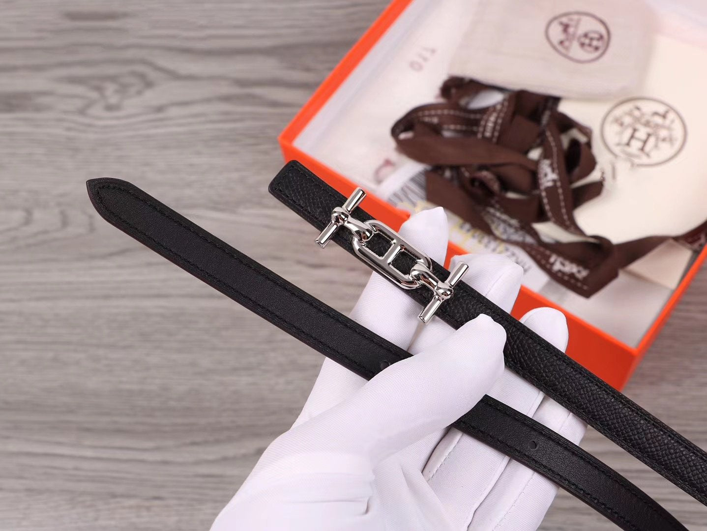 H WOMEN'S BELT 13MM SILVER BUCKLE BLACK LEATHER