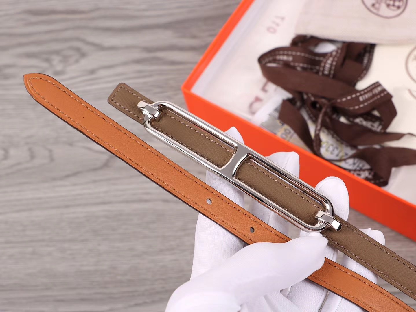 H WOMEN'S BELT 13MM SILVER BUCKLE BROWN GRAY LEATHER