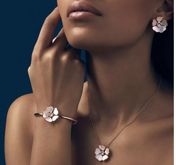 HAPPY HEART WHITE MOP PINK GOLD DIAMOND BRACELET