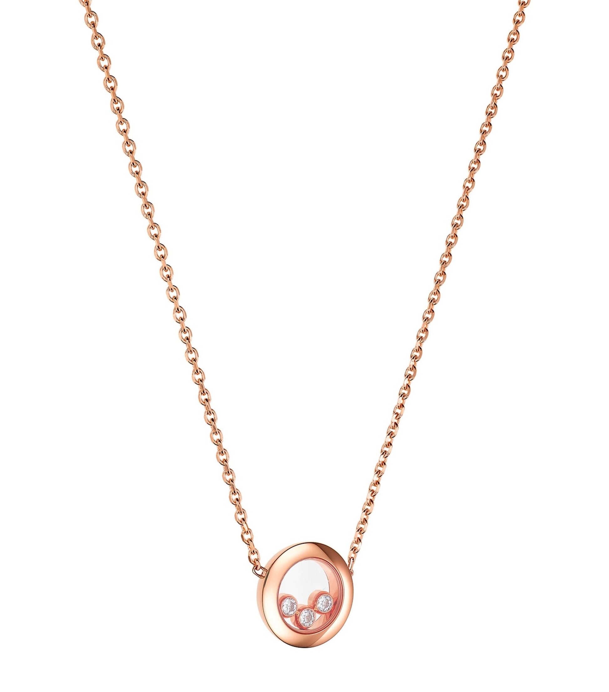 HAPPY PEDANT PINK GOLD 3 DIAMOND NECKLACE