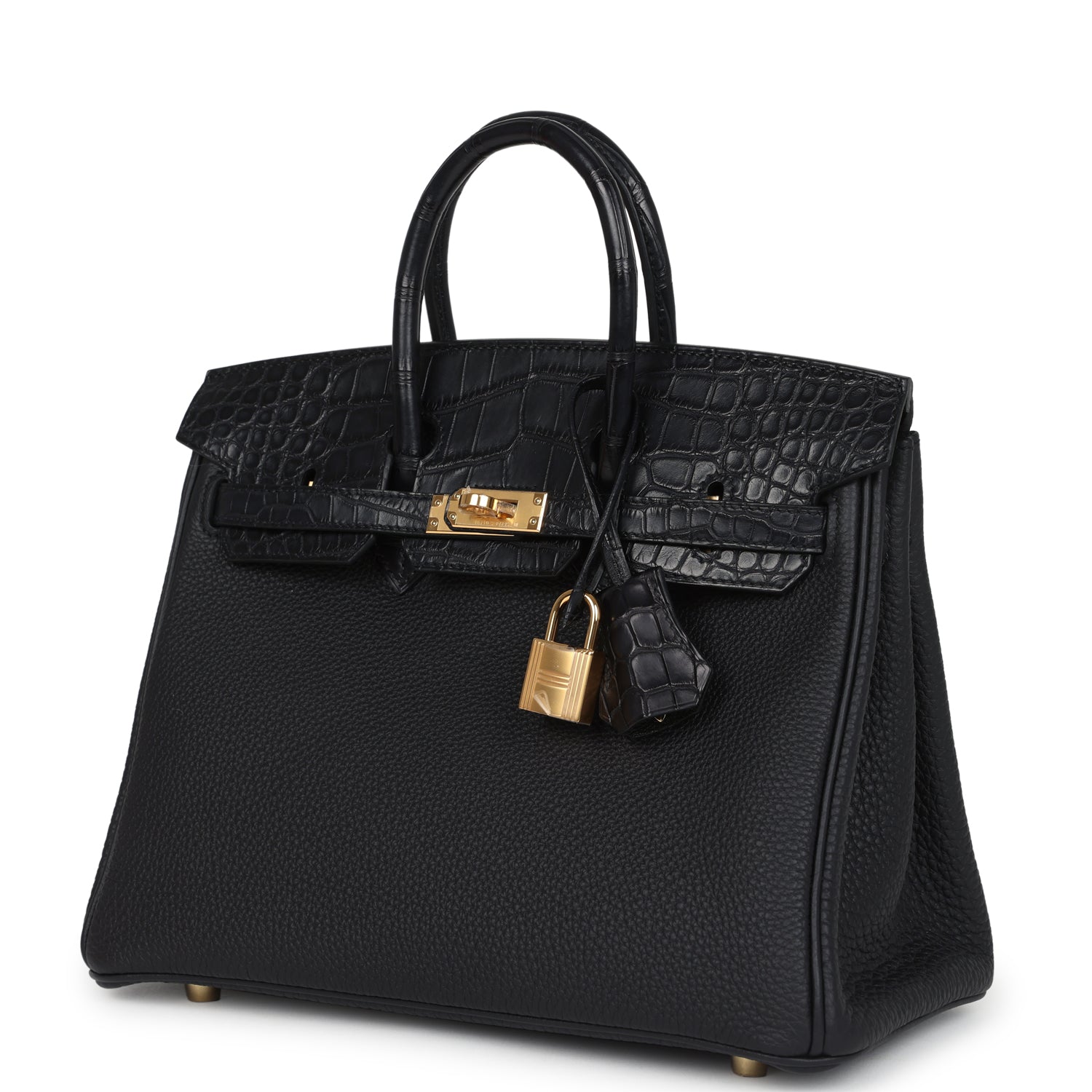 Hermes Birkin 25 Black Matte Alligator and Togo Touch Gold Hardware