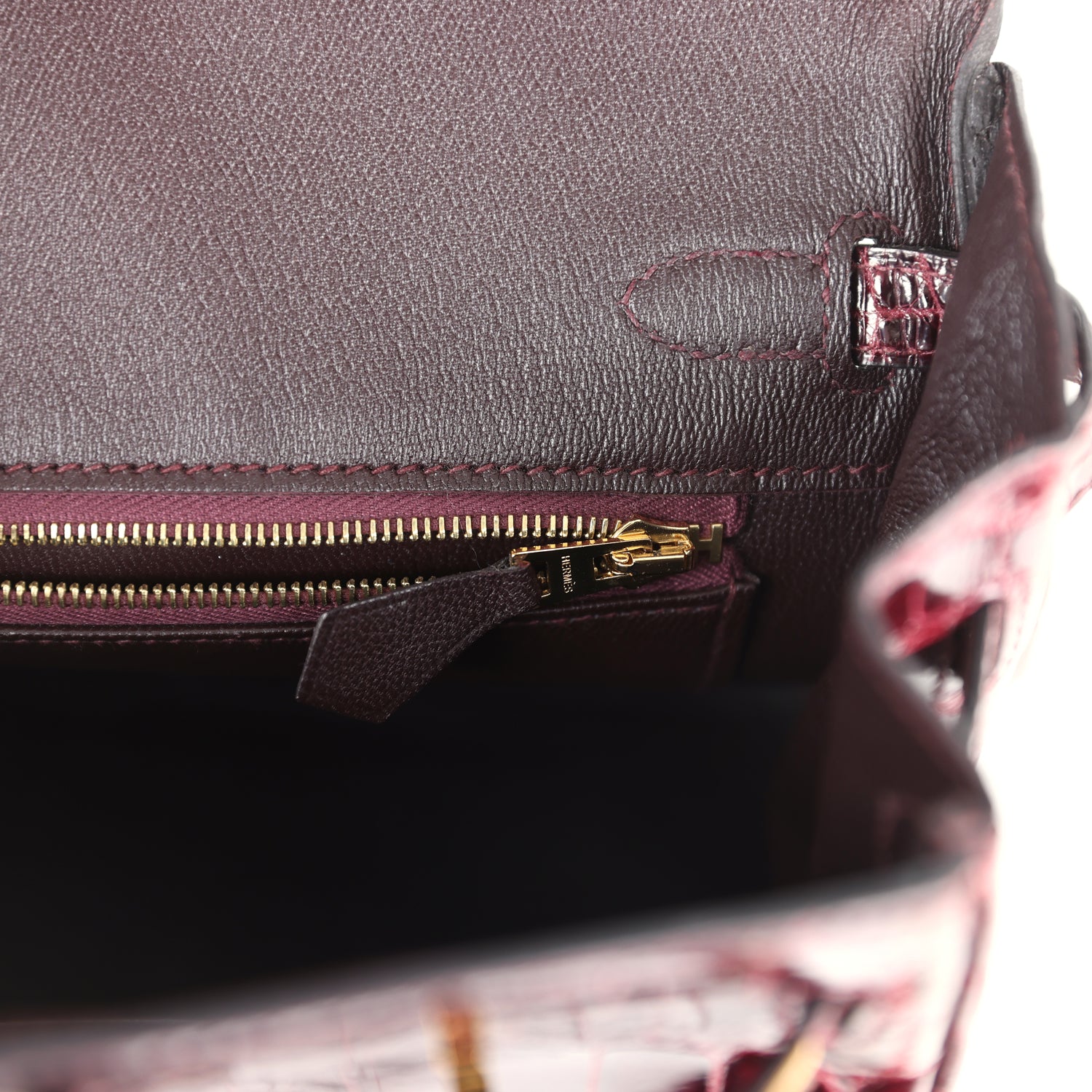 Hermes Birkin 25 Bordeaux Shiny Niloticus Crocodile Gold Hardware