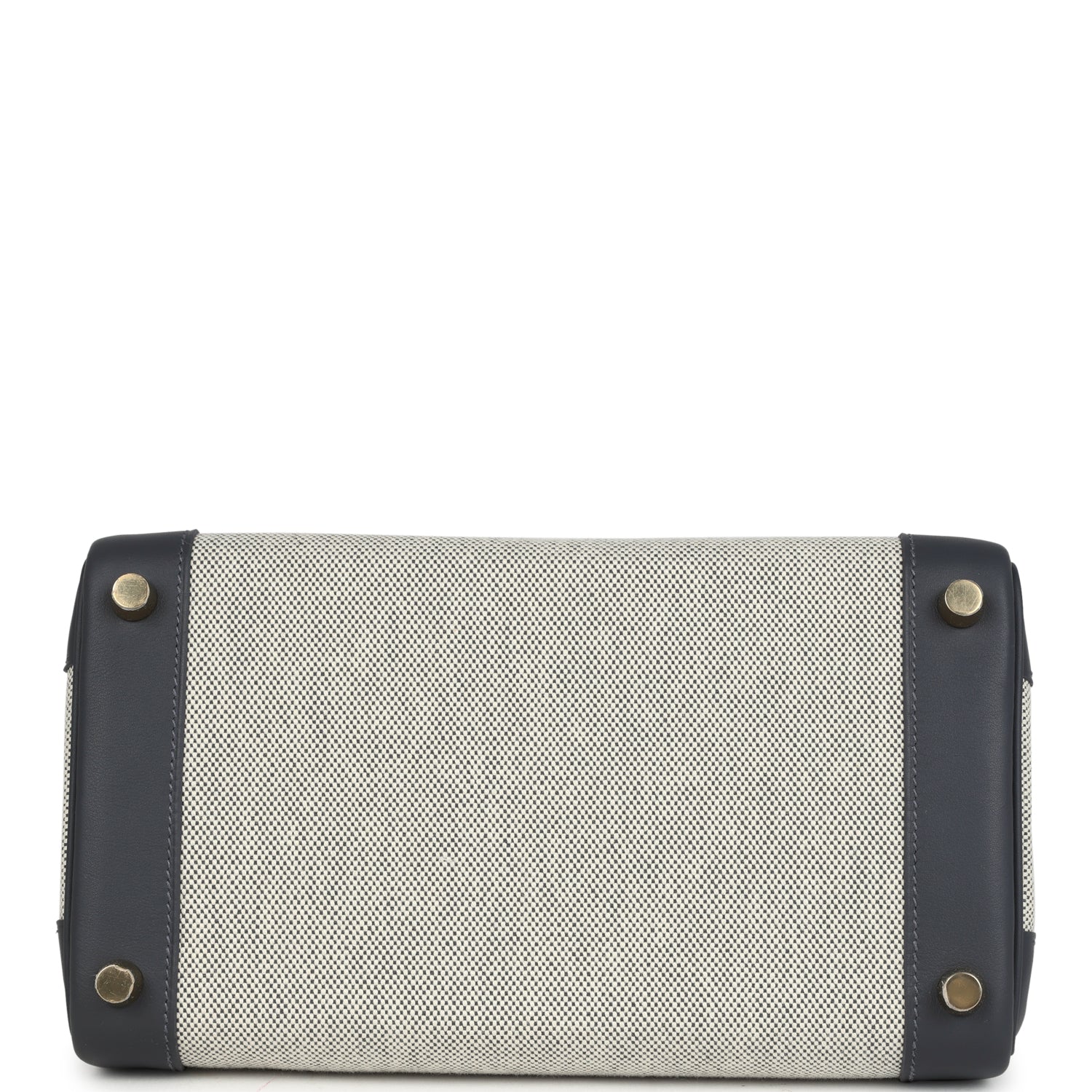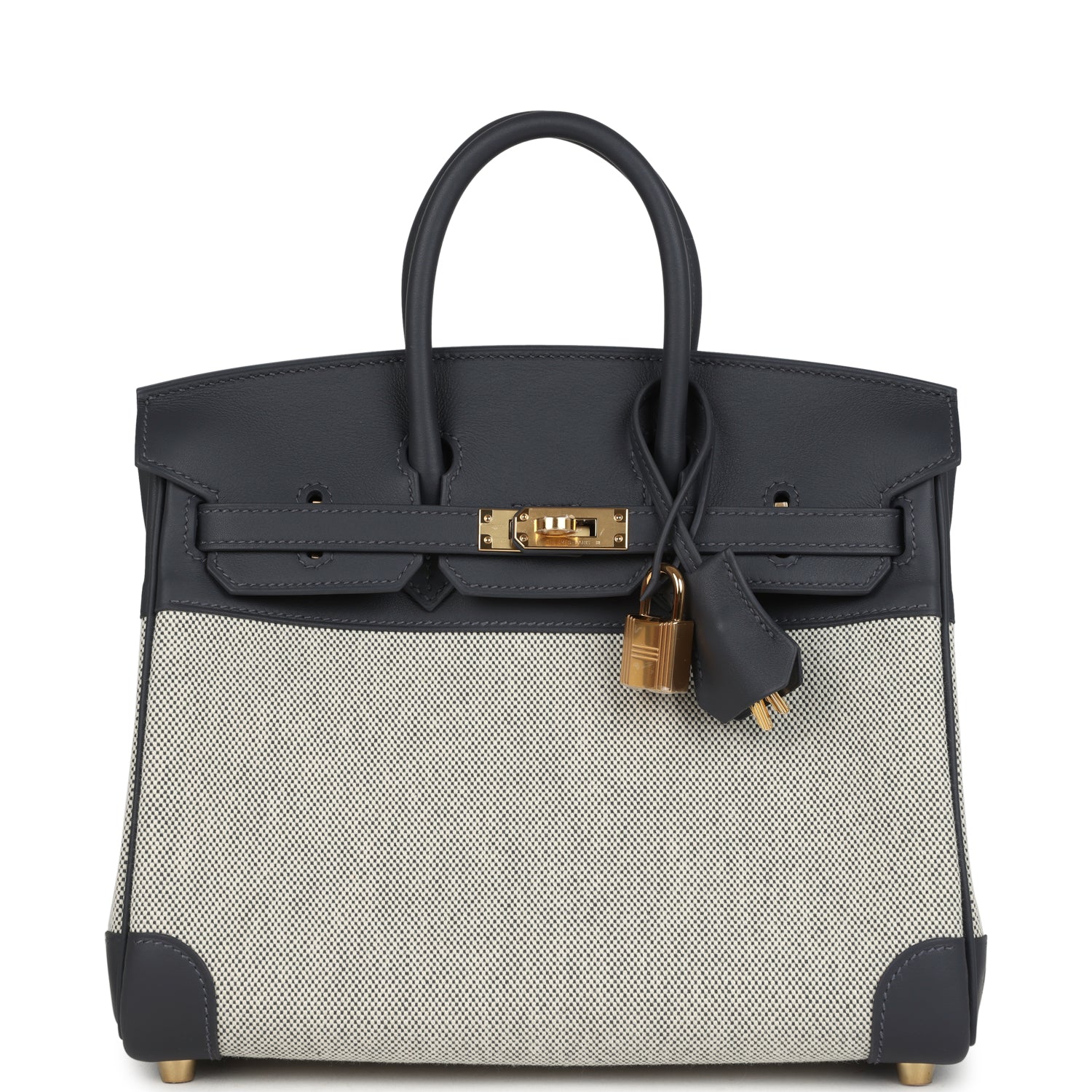 Hermes Birkin 25 Ecru and Ardoise Toile H Canvas and Ardoise Swift Gold Hardware