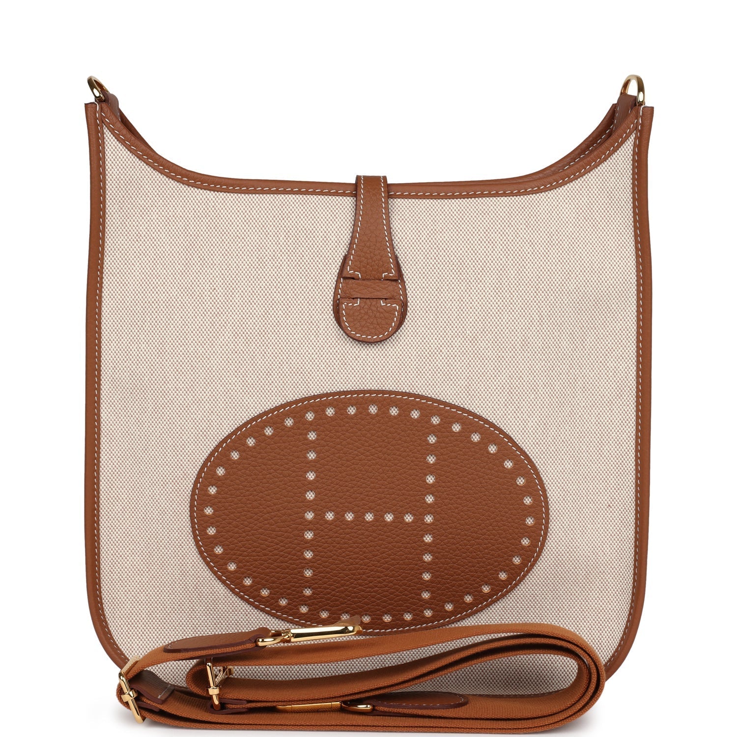Hermes Evelyne III PM Gold Clemence and Ecru Toile H Canvas Gold Hardware