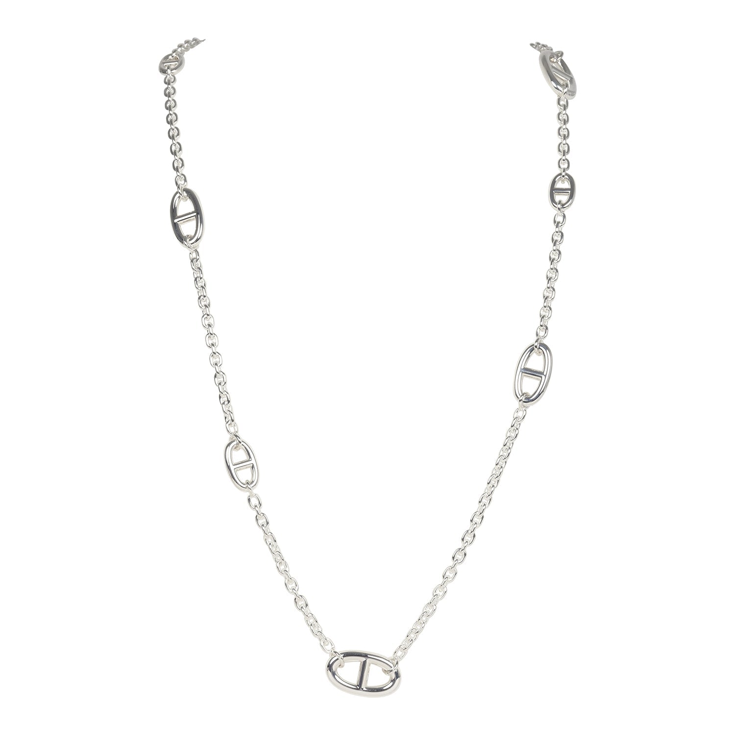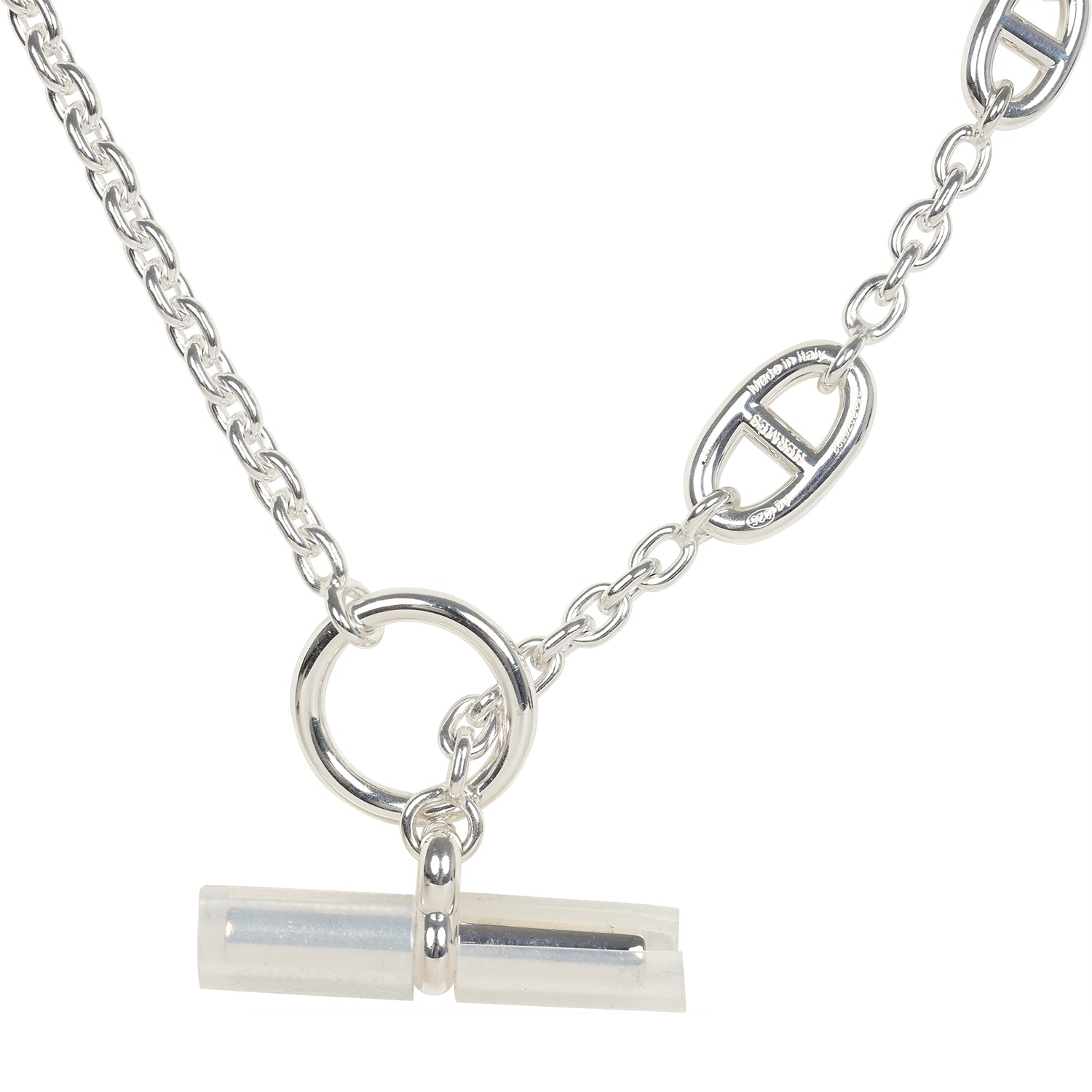 This Hermes Farandole Rope necklace is in sterling silver hardware, featuring a 80cm length necklace with sterling silver chaine d'ancre motif links in different sizes and has a bar and toggle closure.