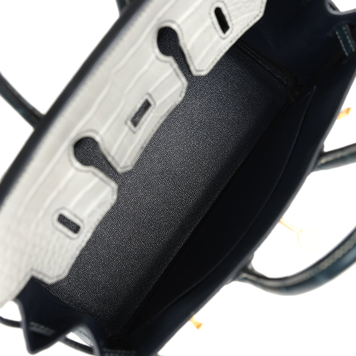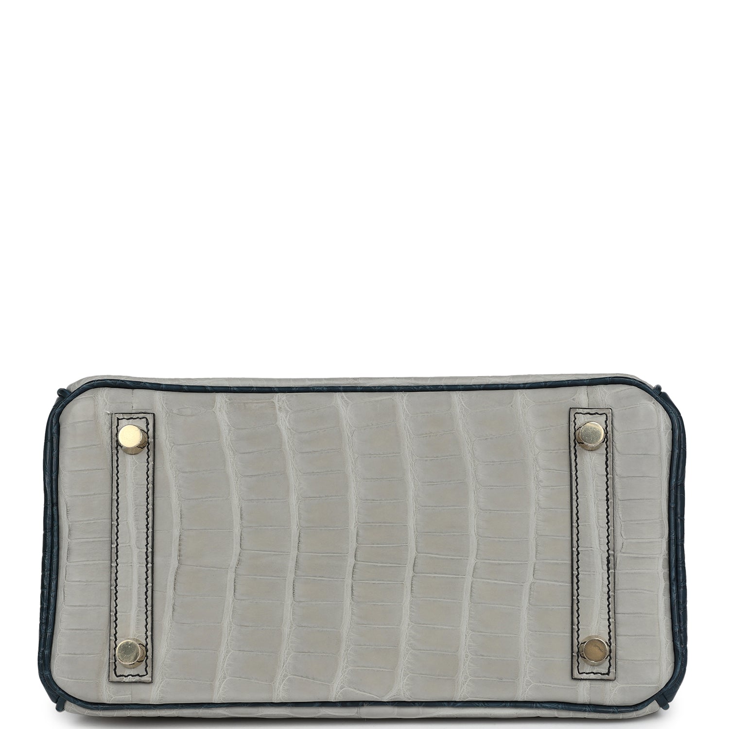 Hermes Special Order (HSS) Birkin 25 Gris Perle and Vert Rousseau Matte Alligator Brushed Gold Hardware