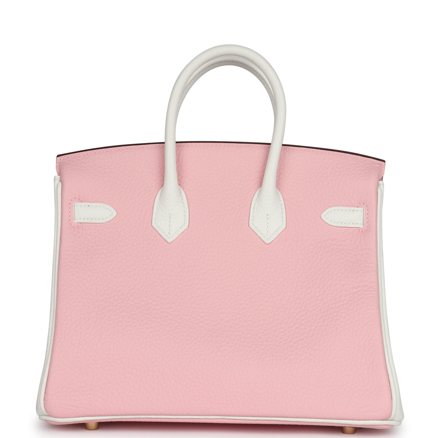 Hermes Special Order (HSS) Birkin 25 Rose Sakura and White Clemence Brushed Gold Hardware
