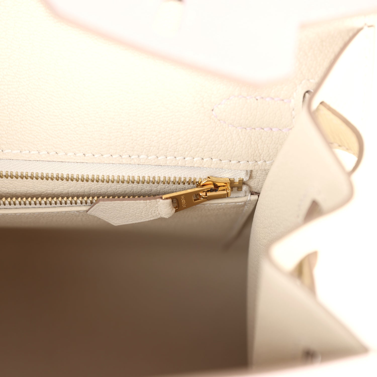 Hermes Special Order (HSS) Birkin Sellier 25 Mauve Pale and Craie Epsom Brushed Gold Hardware