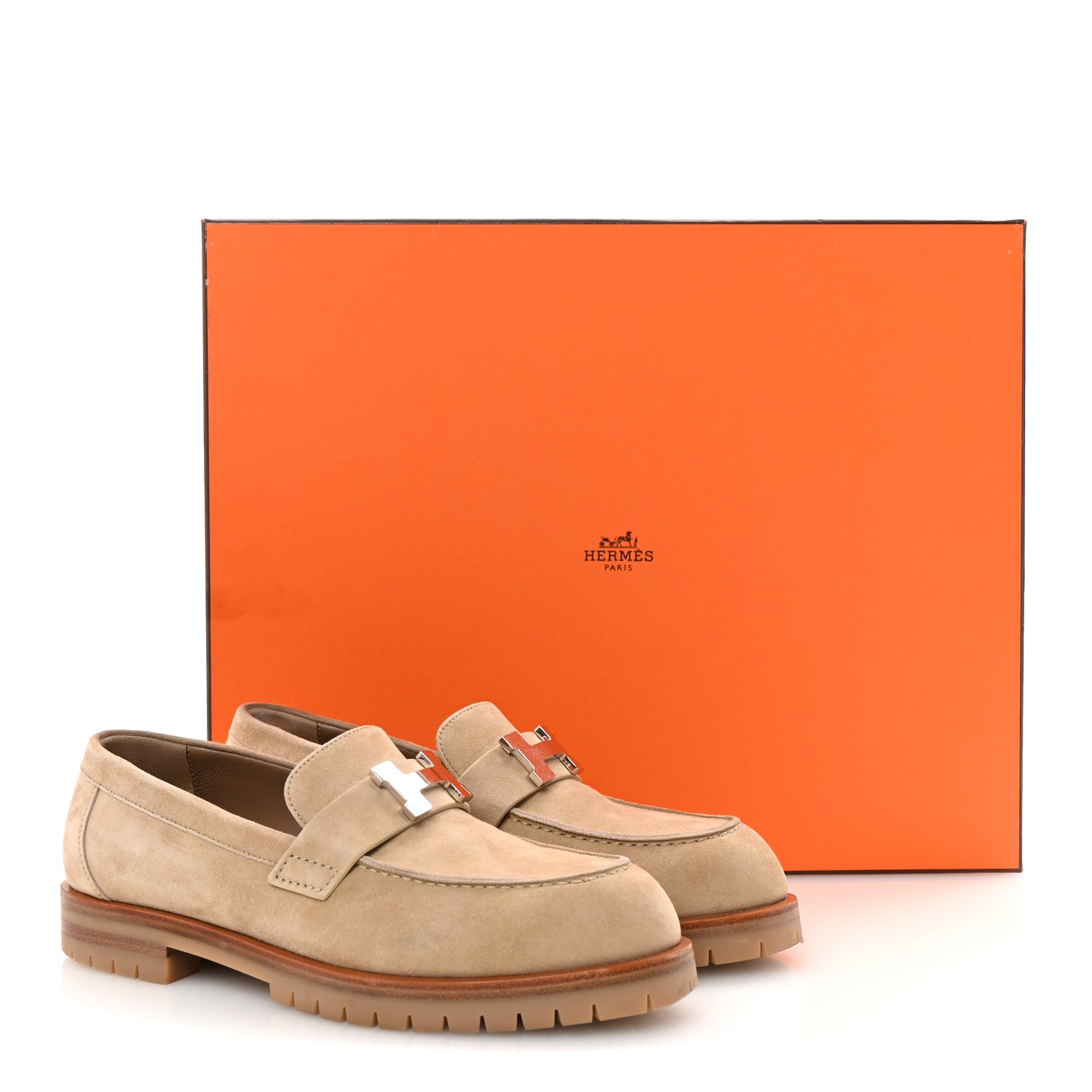 Suede Goatskin Womens Faubourg Loafers 36 Beige Argile