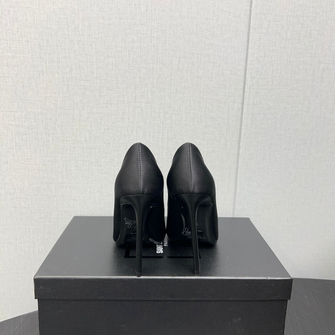 HIGH PUMPS IN BLACK SILK ATTACHED GOLD CHAIN
