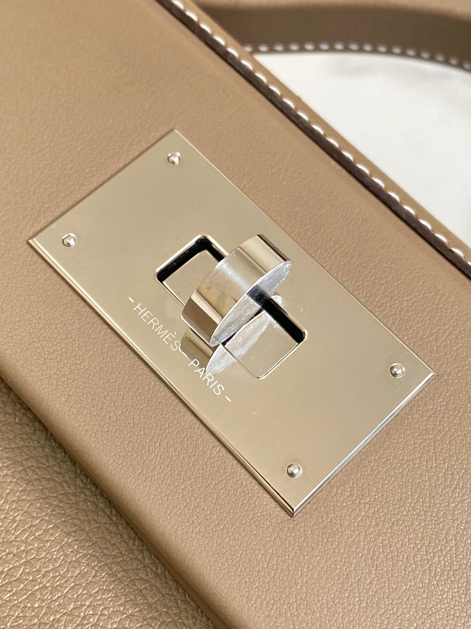 HM 24/24 Mini Bag 21cm Etoupe Evercolor Leather Silver Hardware