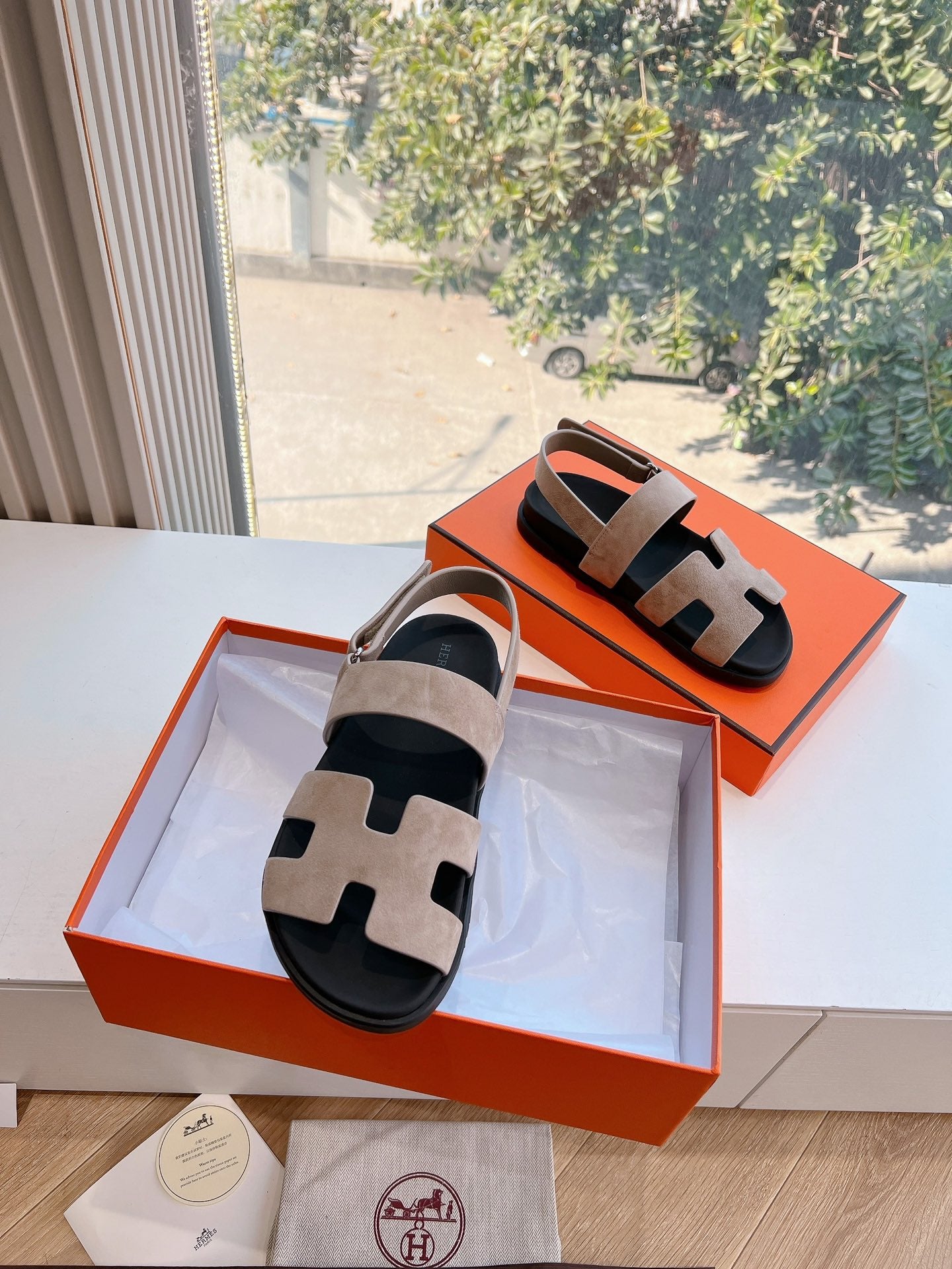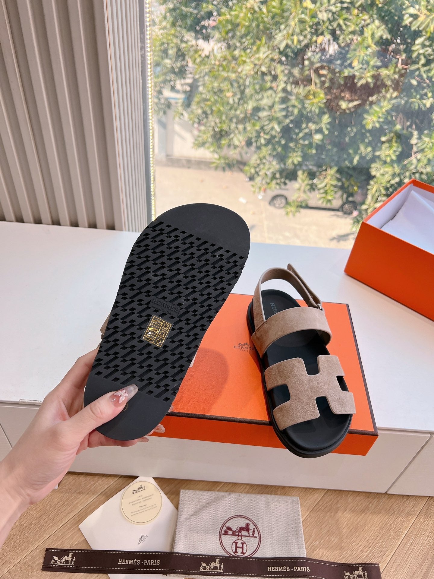 HM 25 Genius Sandal Rose Brown Suede Black Calfskin