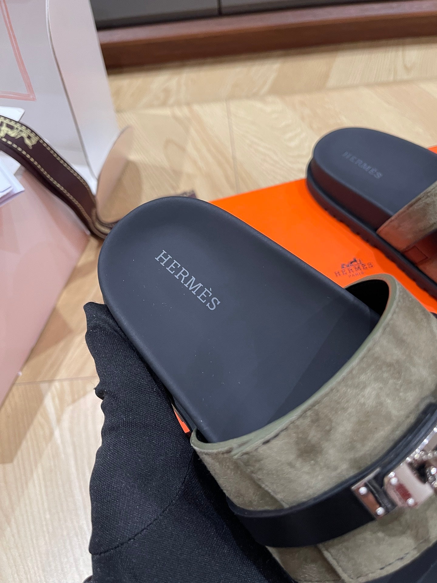 HM 25 Jackson Sandal Khaki Suede Black Calfskin