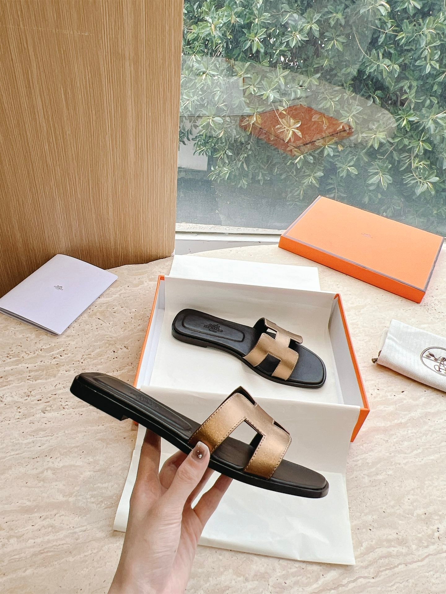 HM 25 Oran Sandal Black Copper Metalic Calfskin