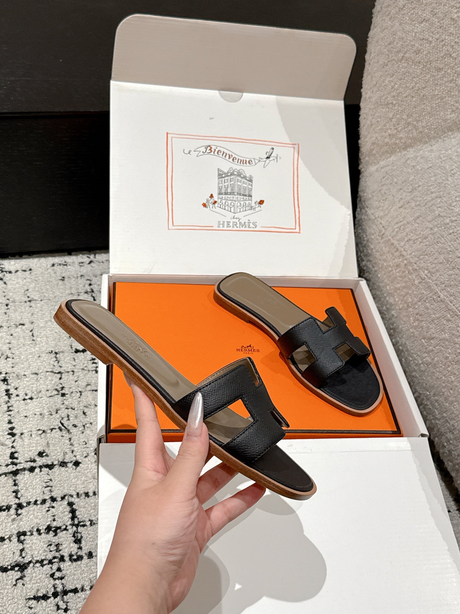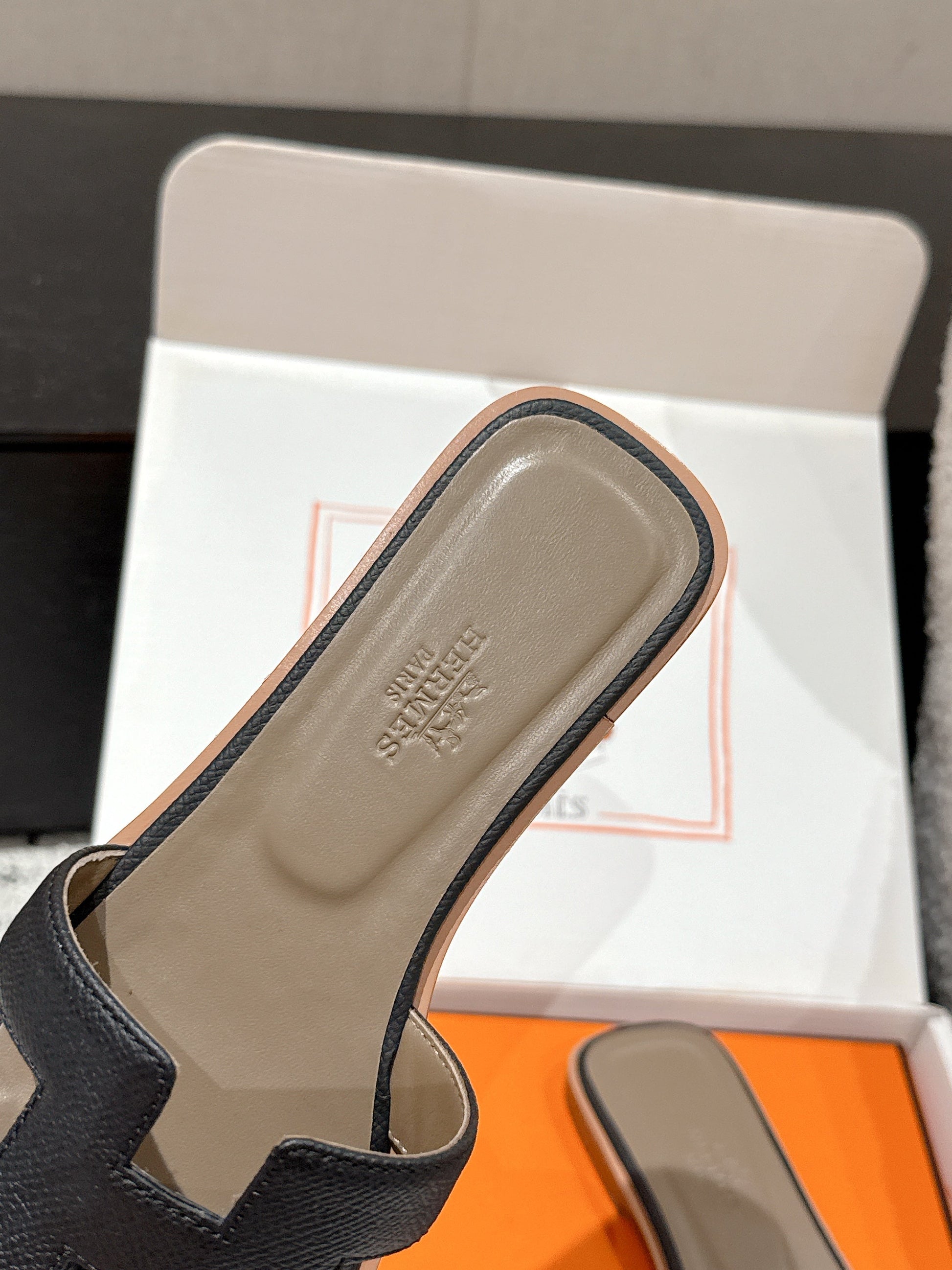HM 25 Oran Sandal Black Epsom Etoupe Calfskin