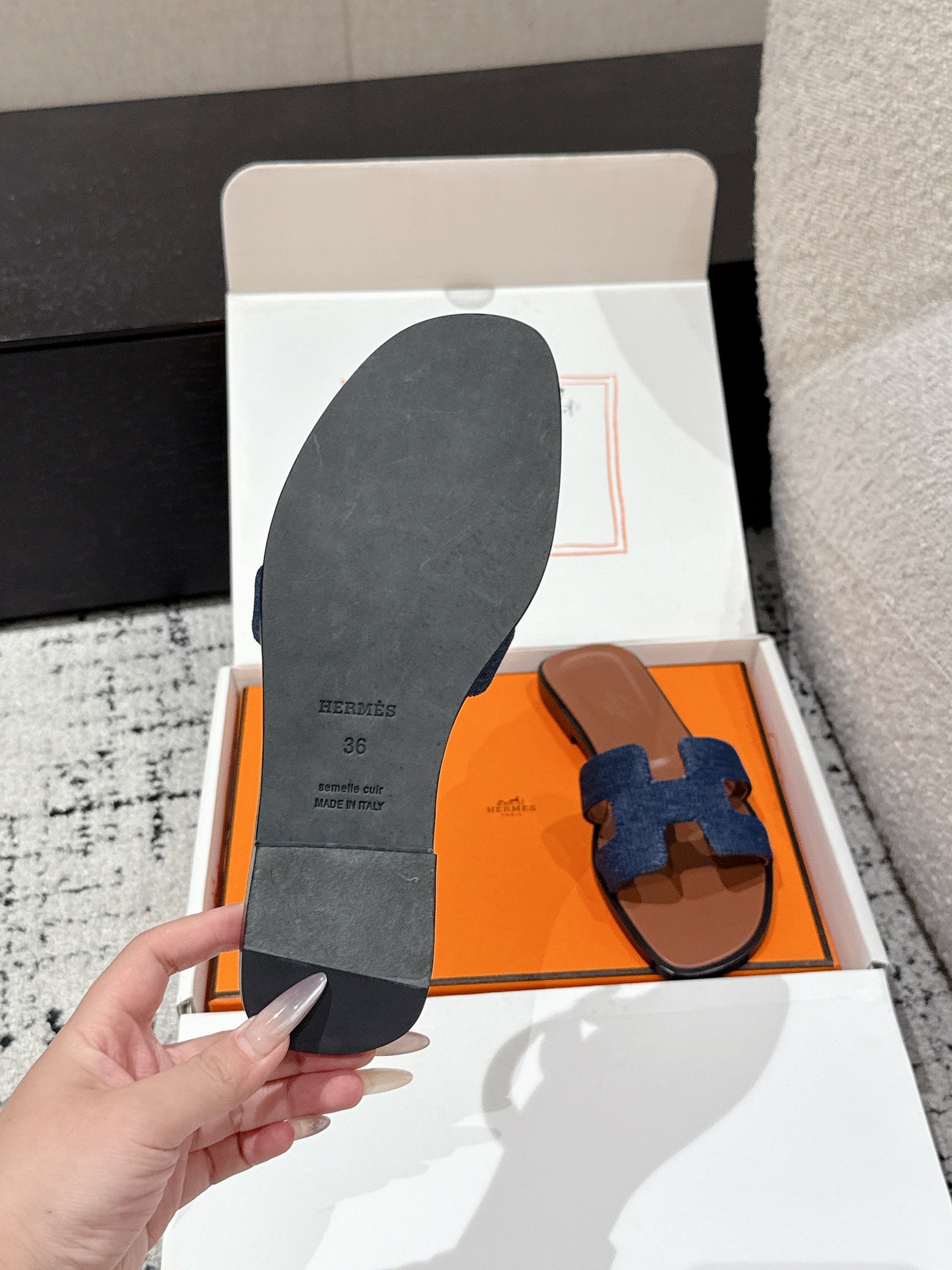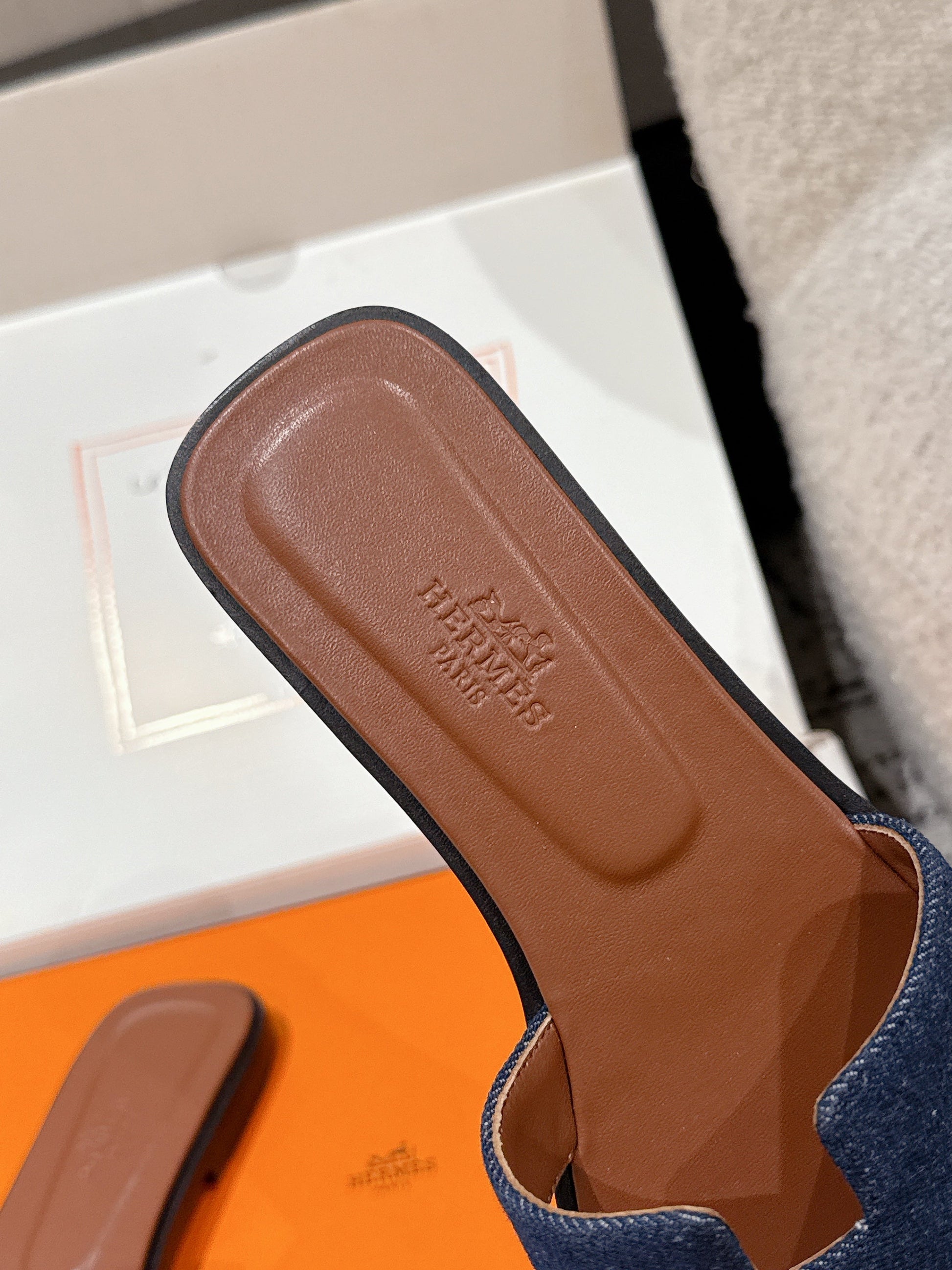 HM 25 Oran Sandal Brown Calfskin Dark Blue Denim